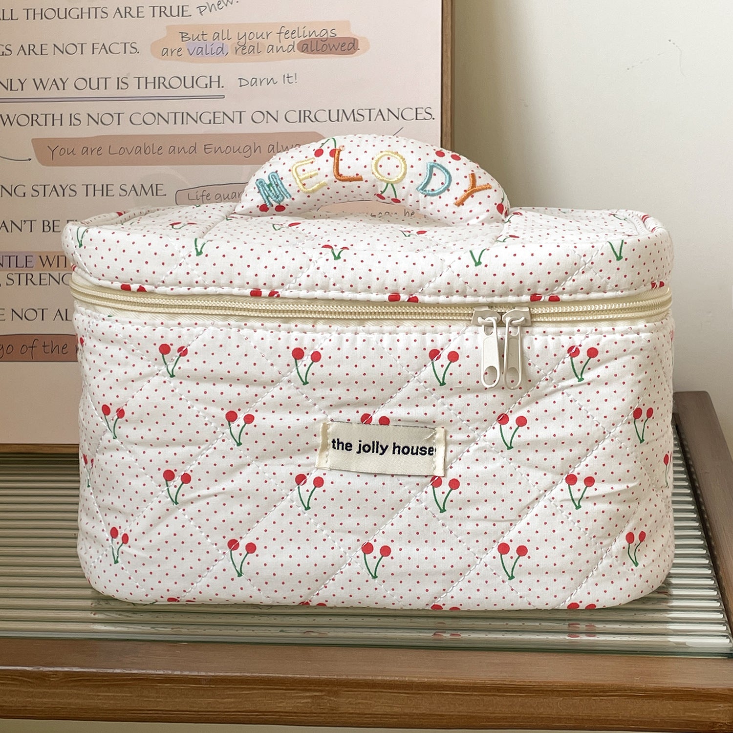 Cute Polka Dots Cherry Print Travel Makeup Bag DP25H563