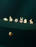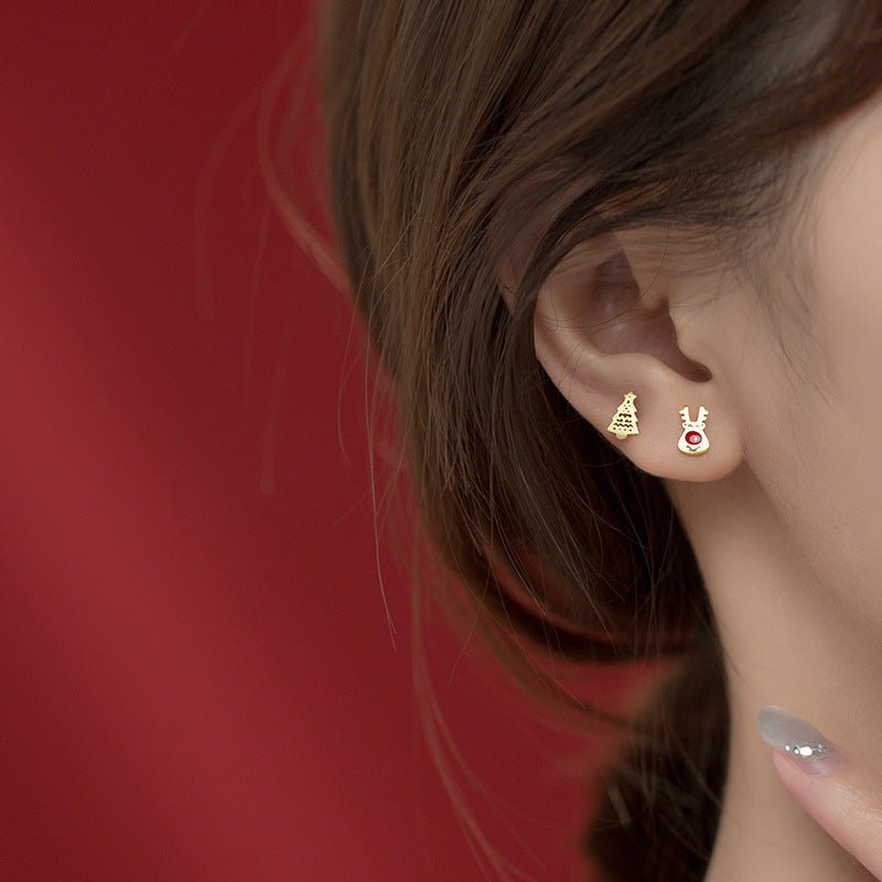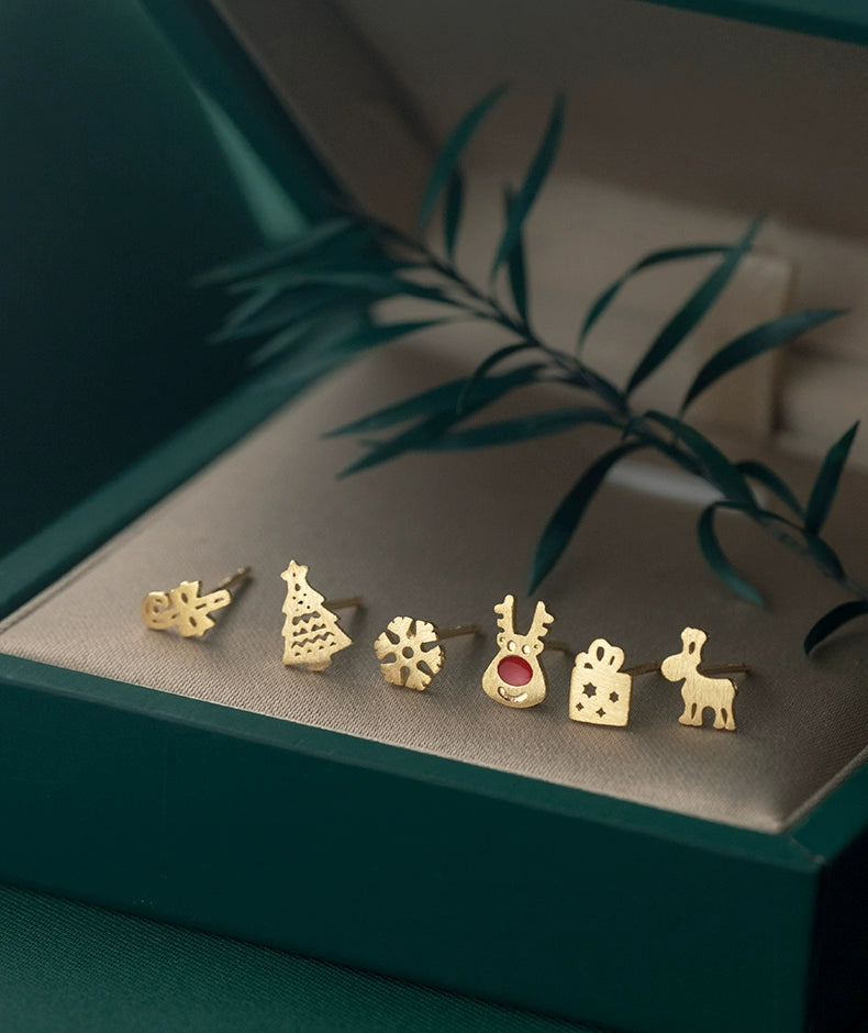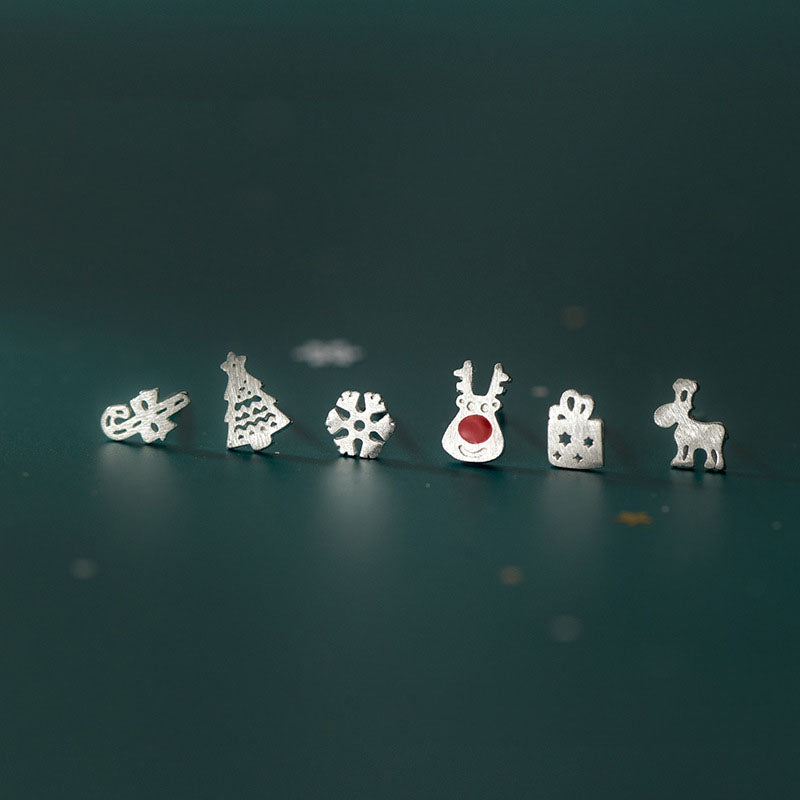 Cute Silver Mini Reindeer Christmas Earrings Set DP25G798