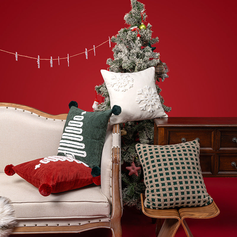 Cute Square Christmas Pillow Case With Pom DP25H473