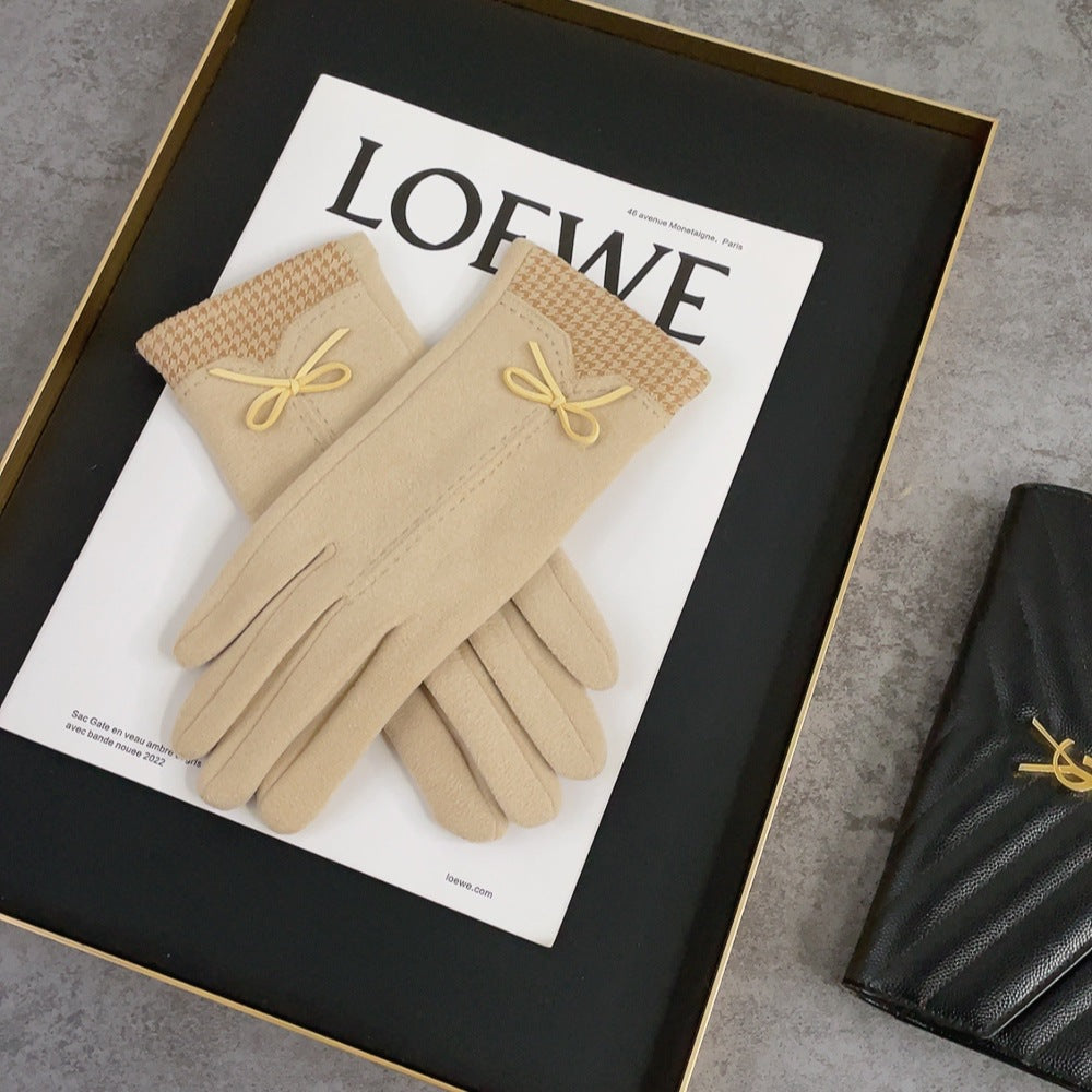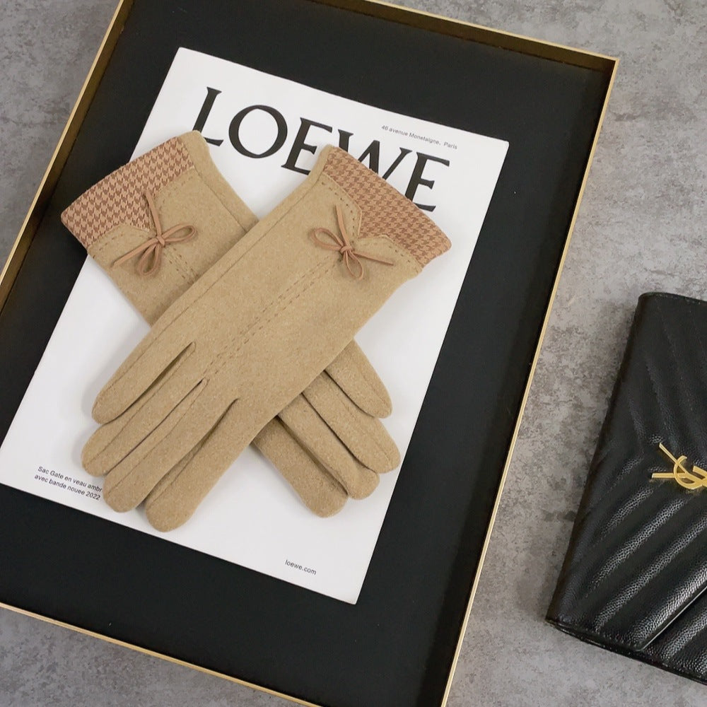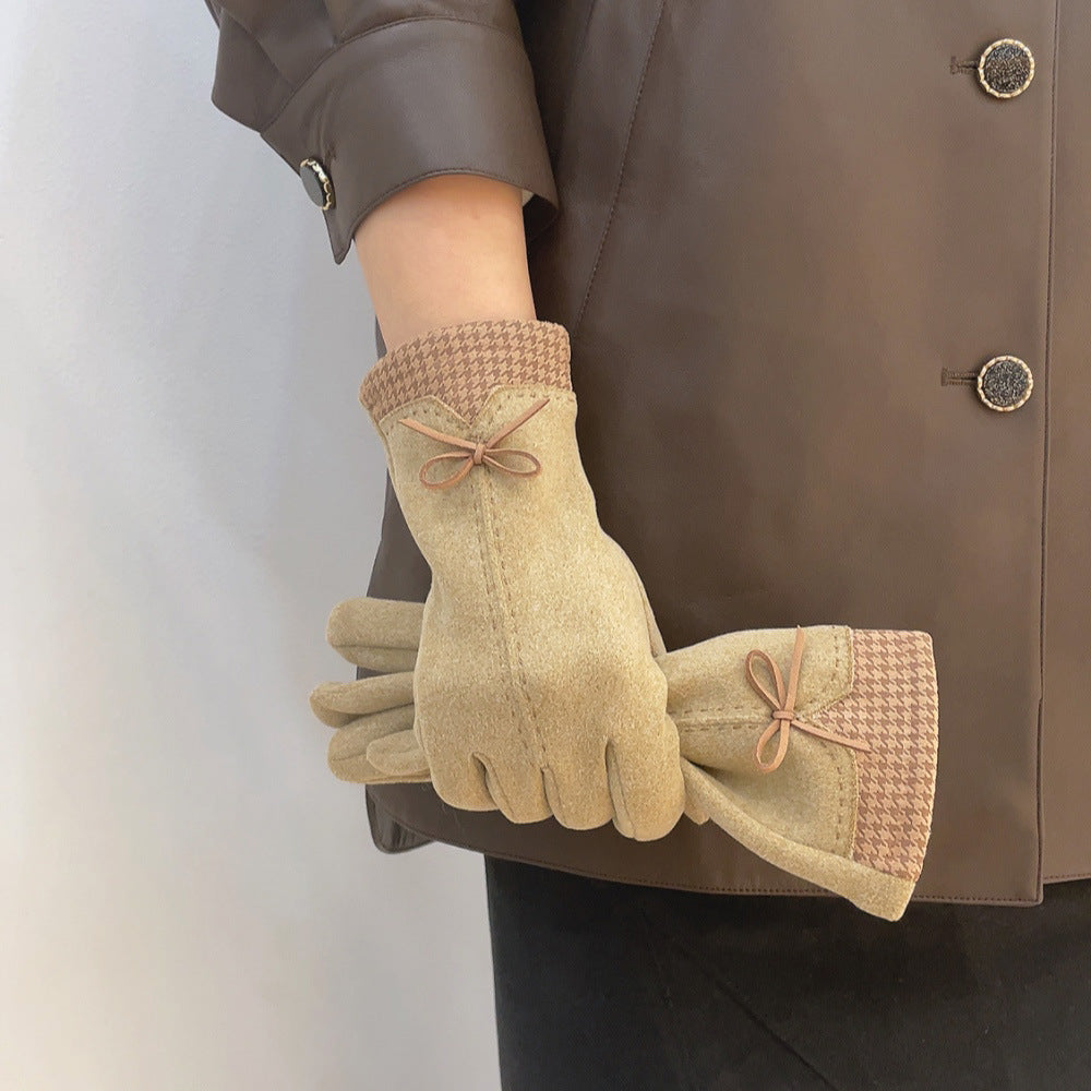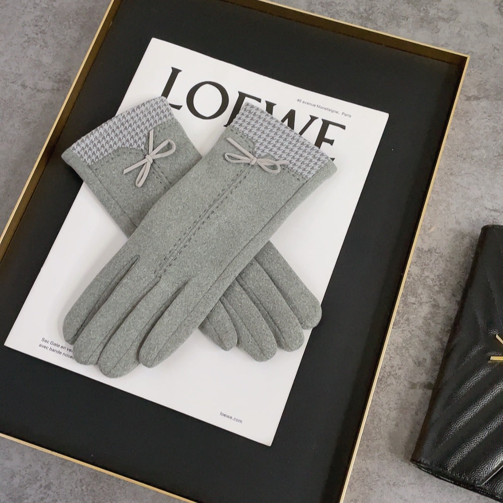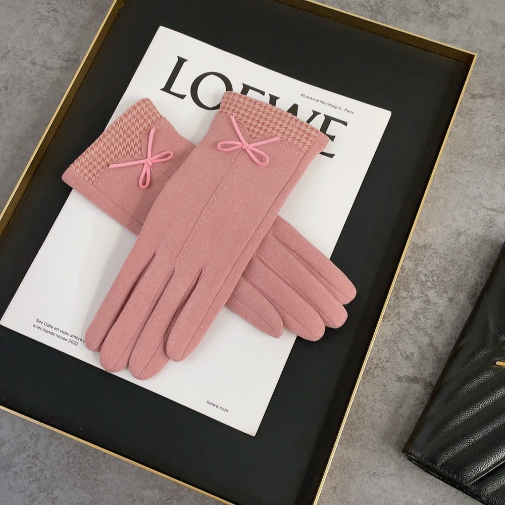 Elegant Bow Knot Thick Plush Suede Gloves DP25H748