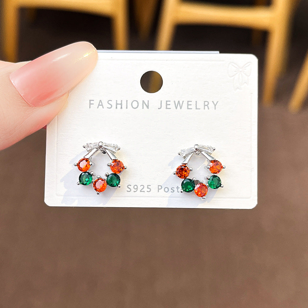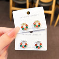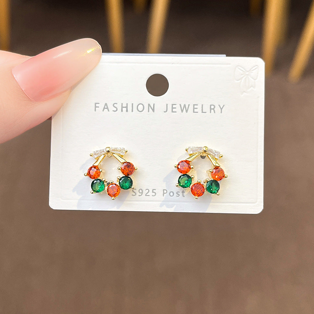 Elegant Christmas Wreath Rhinestone Stud Earrings DP25G797