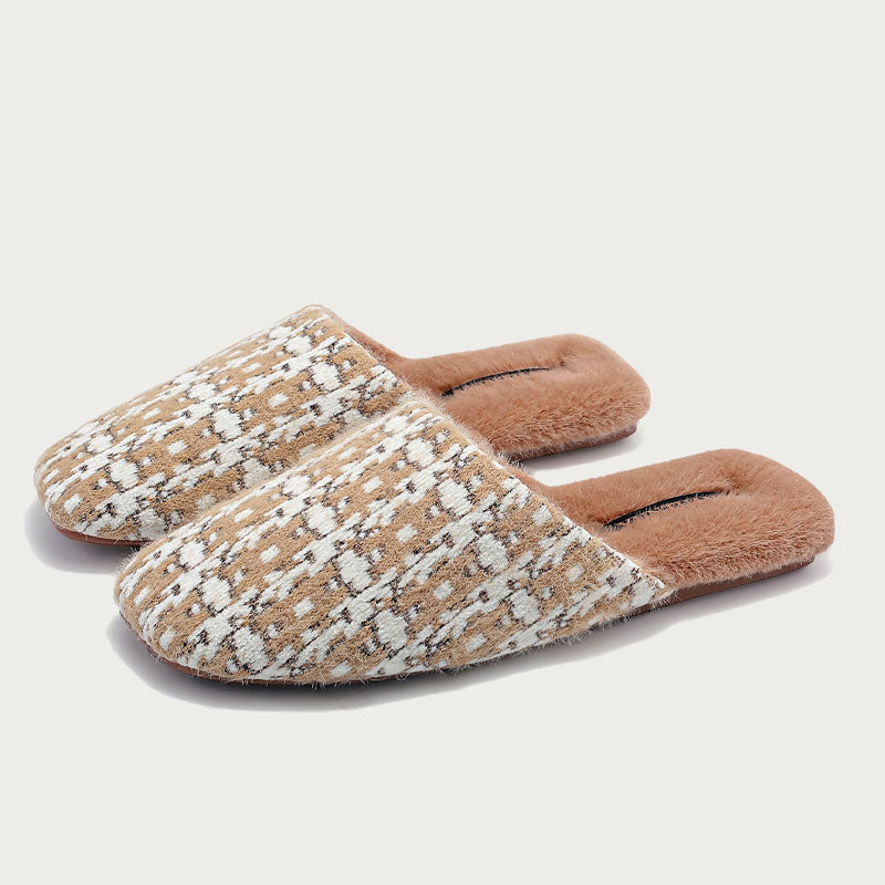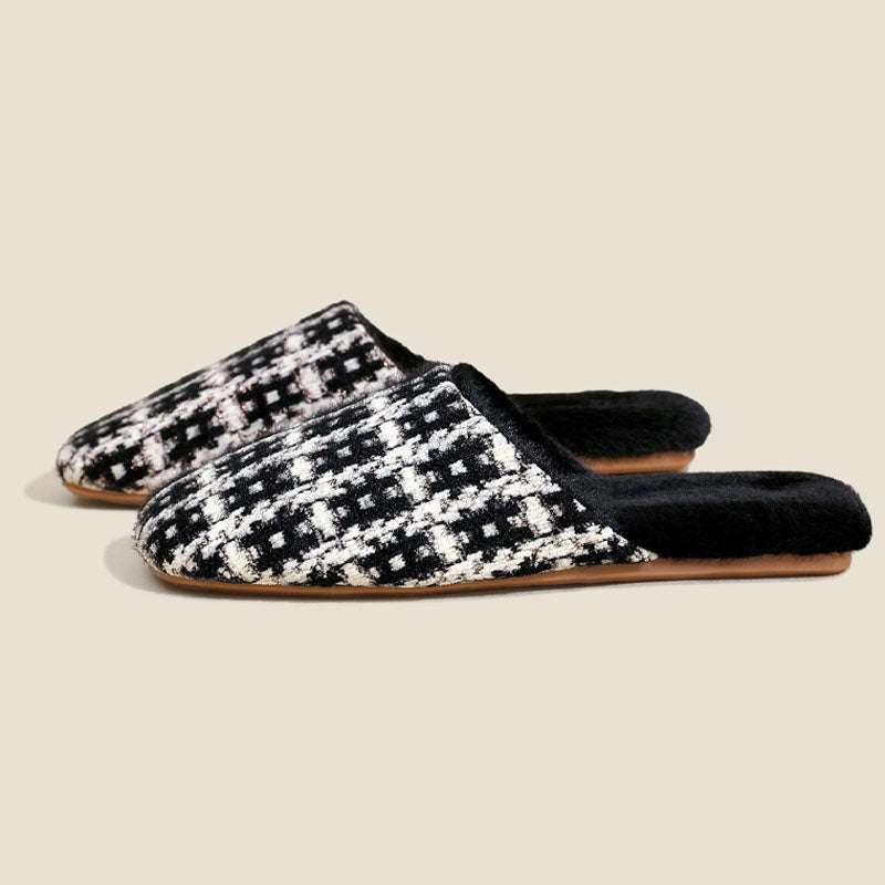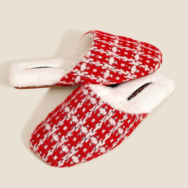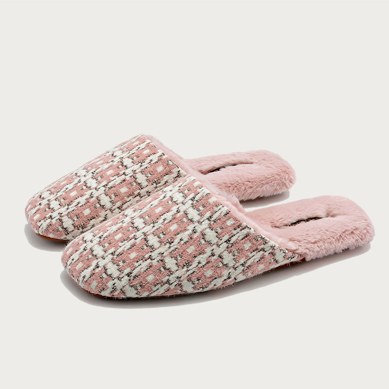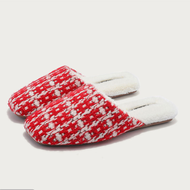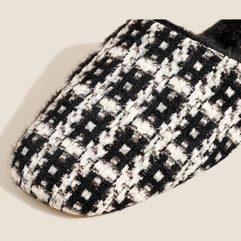 Elegant Color Block Plaid Plush Indoor Slippers DP25H509