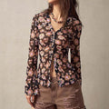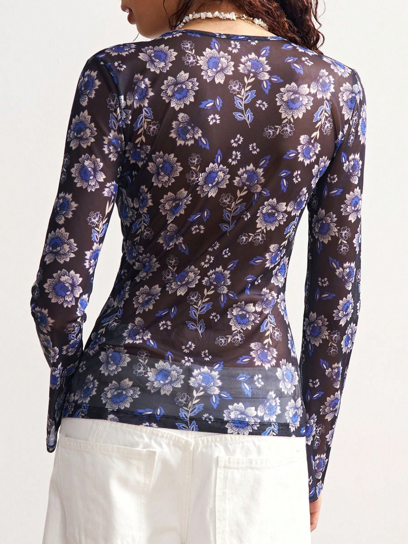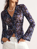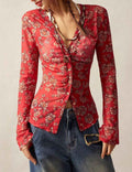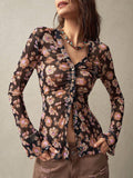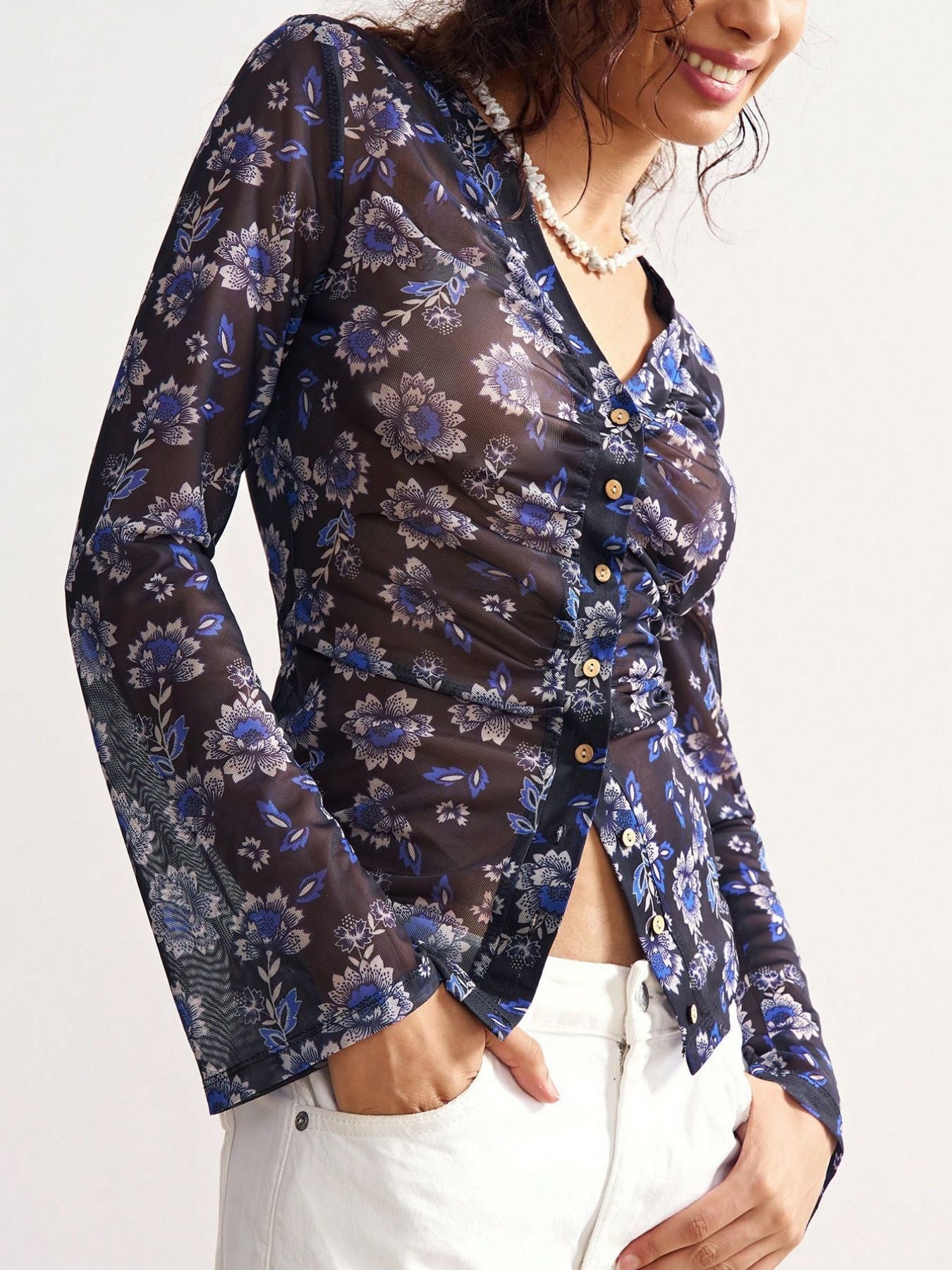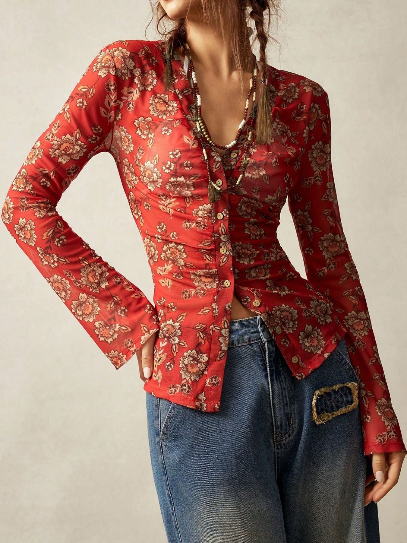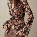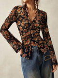Elegant Floral Print V- Neck Long Sleeve Blouse DP25G982