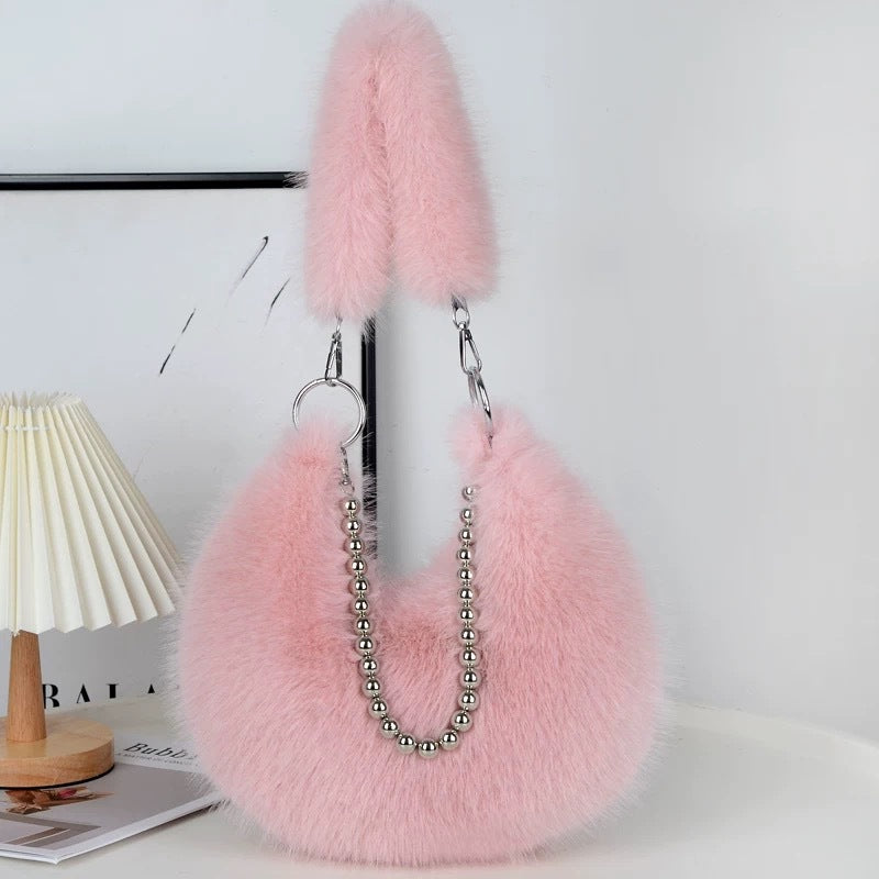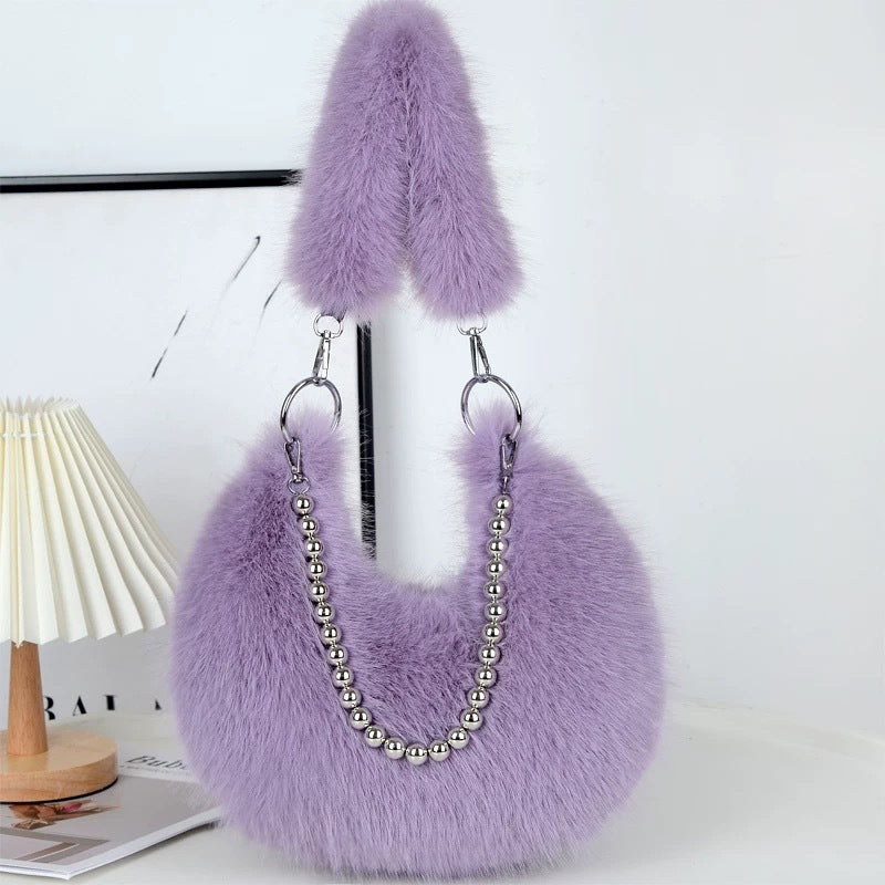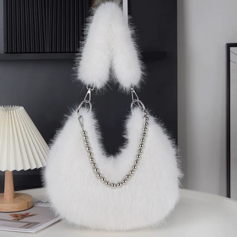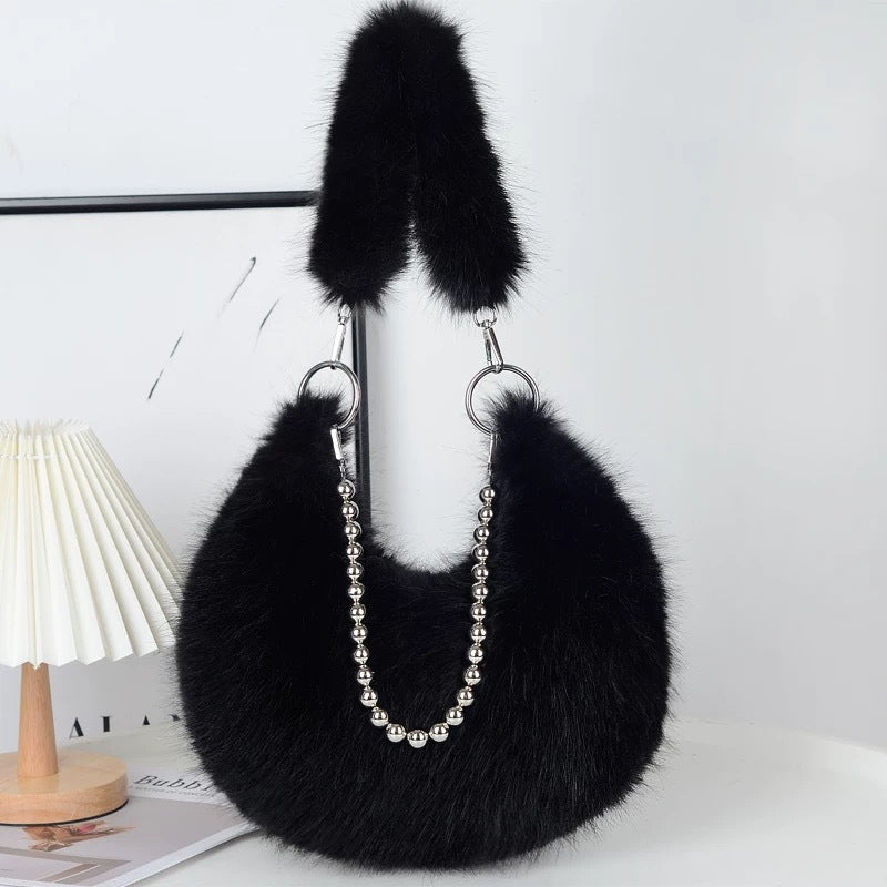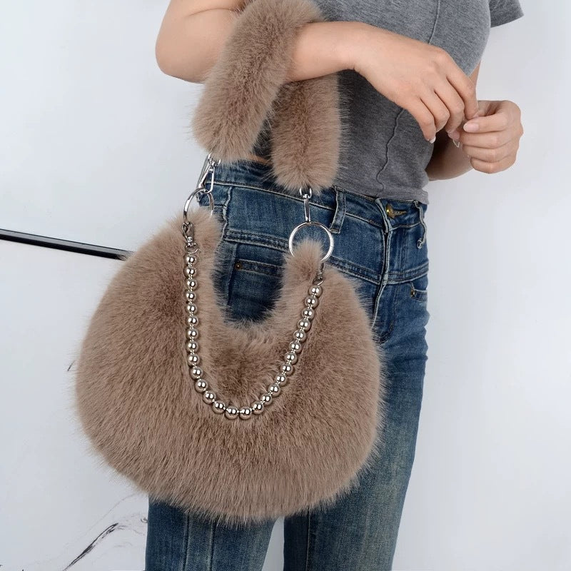 Elegant Furry Faux Fox Fur Shoulder Bag DP25G658