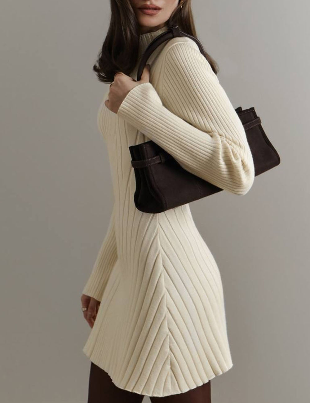 Elegant Mock Neck Knit Mini A-Line Dress DP25H661