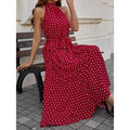 Elegant Polka Dot Tie Waist Halter Dress DP25D597