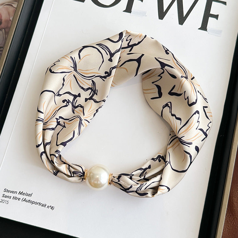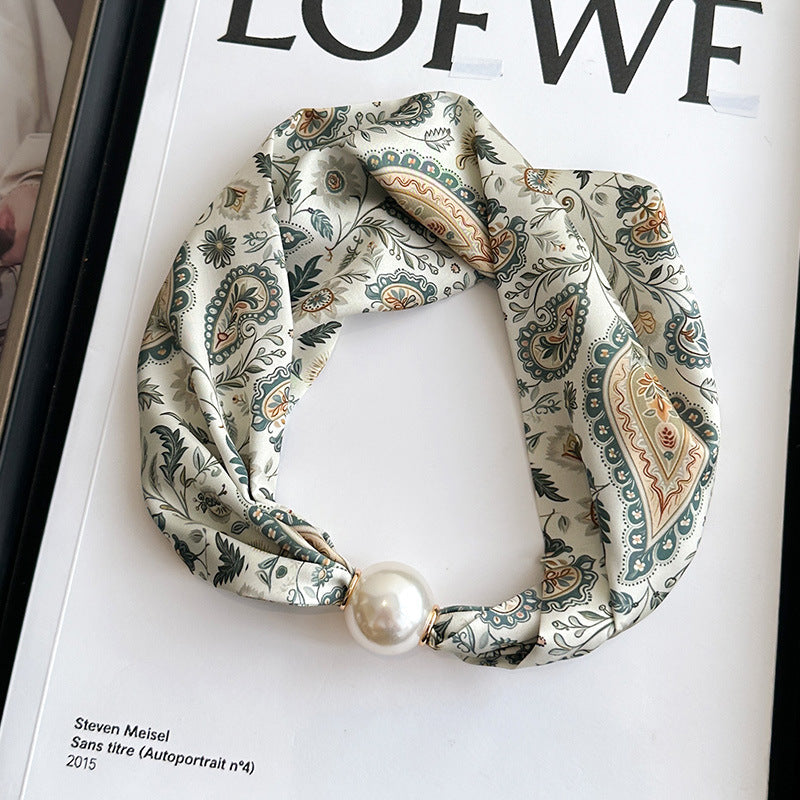 Elegant Print Large Pearl Silk Scarf DP25G463