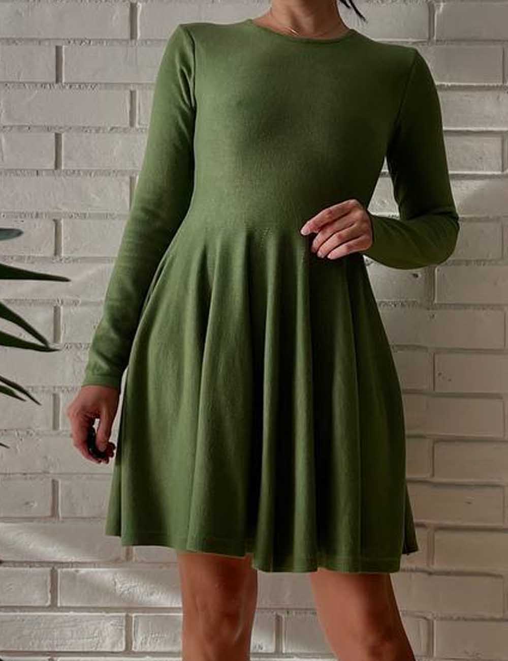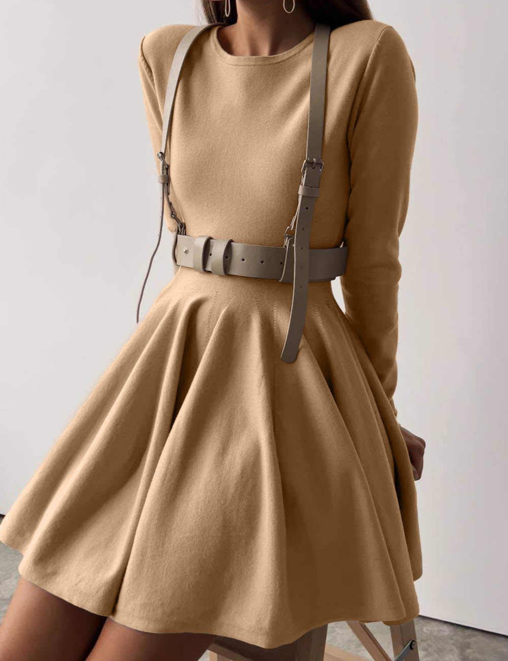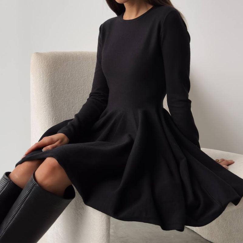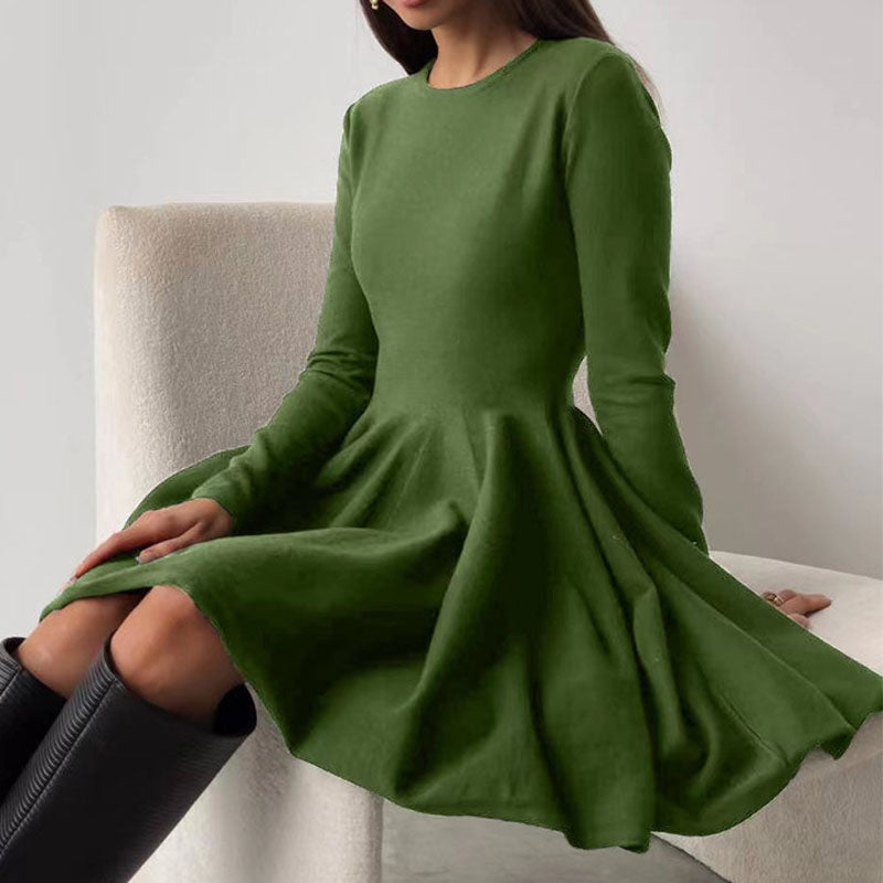 Elegant Round Neck Long Sleeve Flare Mini Dress DP25F721