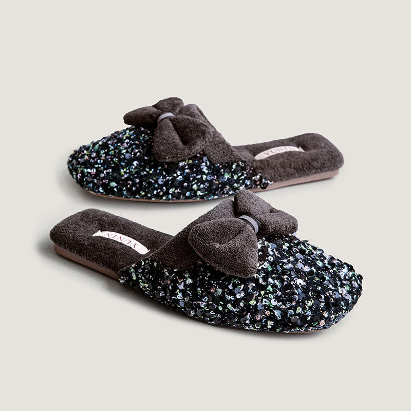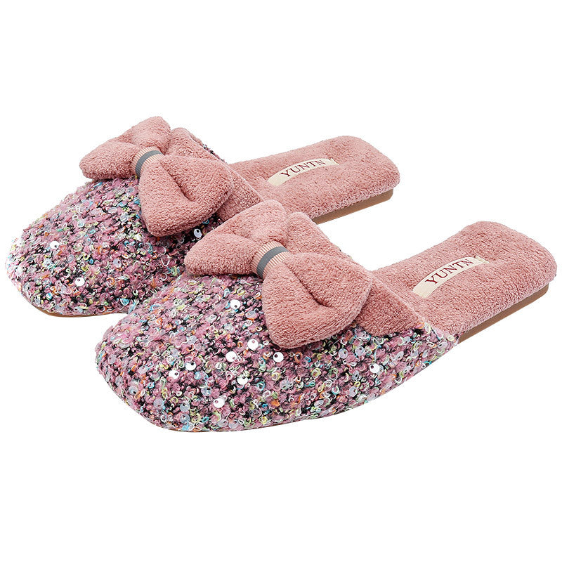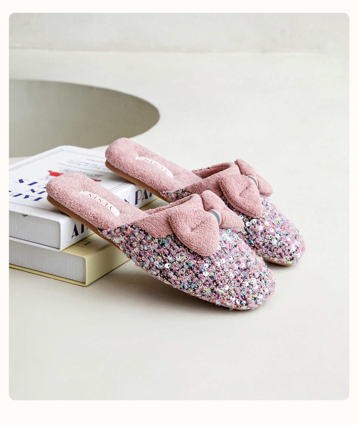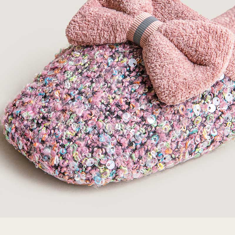 Elegant Sequins Plush Bow Knot Slippers DP25H506