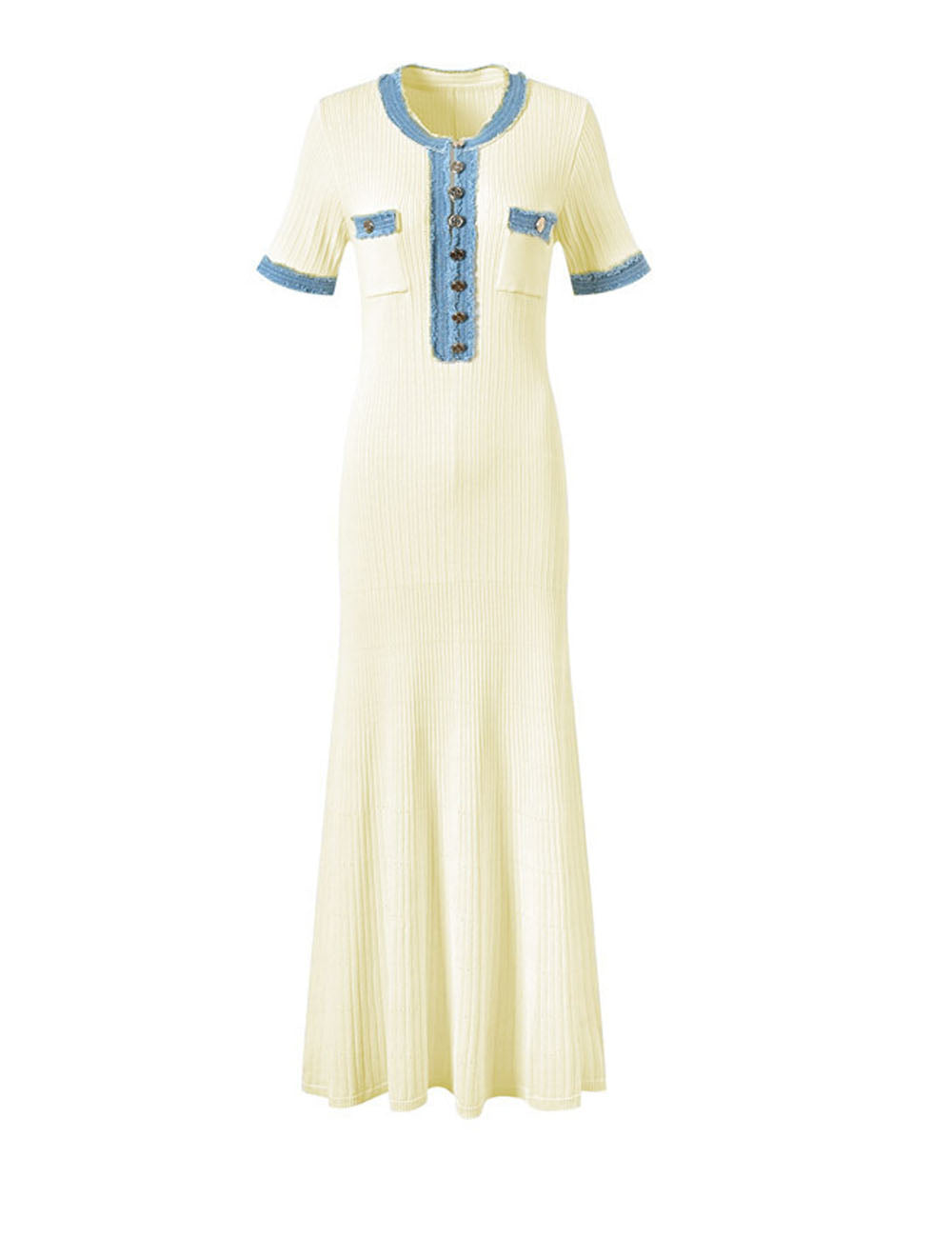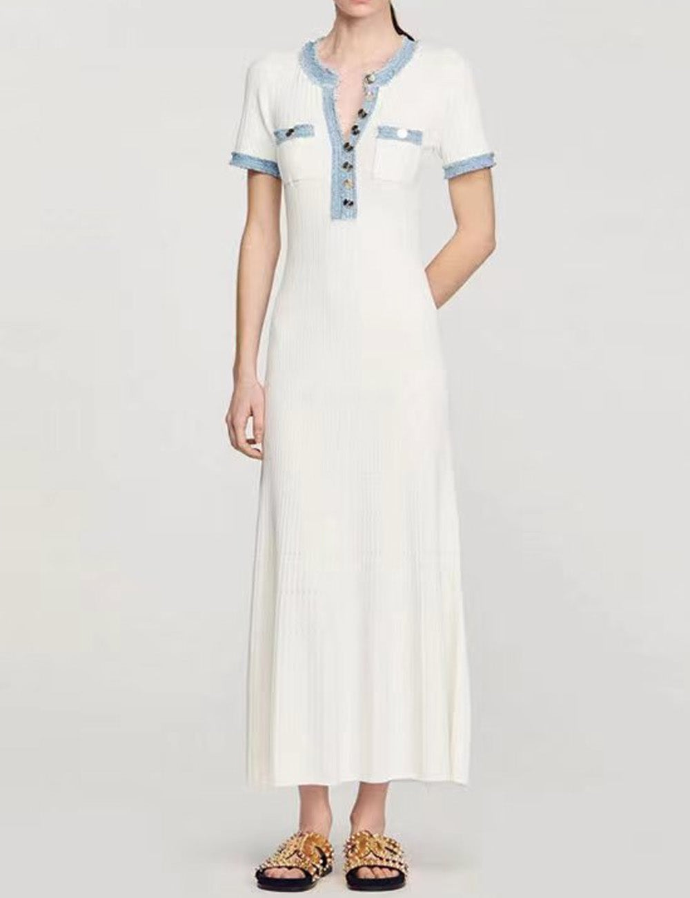 Elegant Short Sleeve Button Up Maxi Dress DP25G537