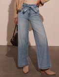 Elegant Tie Front High Waisted Straight Leg Jeans DP25G684