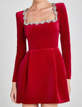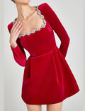 Elegant Velvet Rhinestone Trim Mini Dress DP25E676