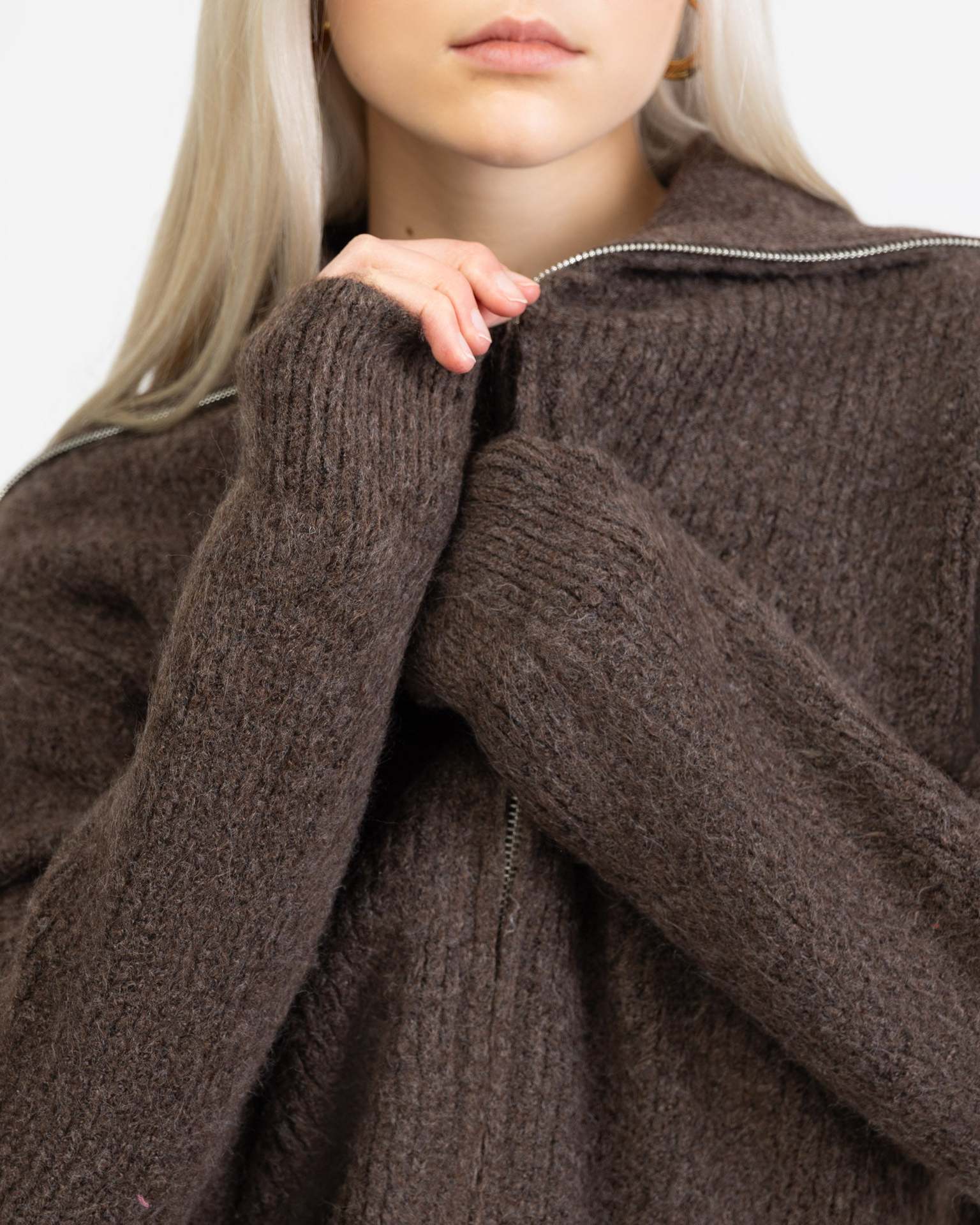 Fall Chunky Knit Open Front Zipper Cardigan DP25G962