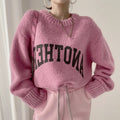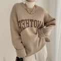Fall Letter Print Round Neck Oversized Knit Sweater DP25G936