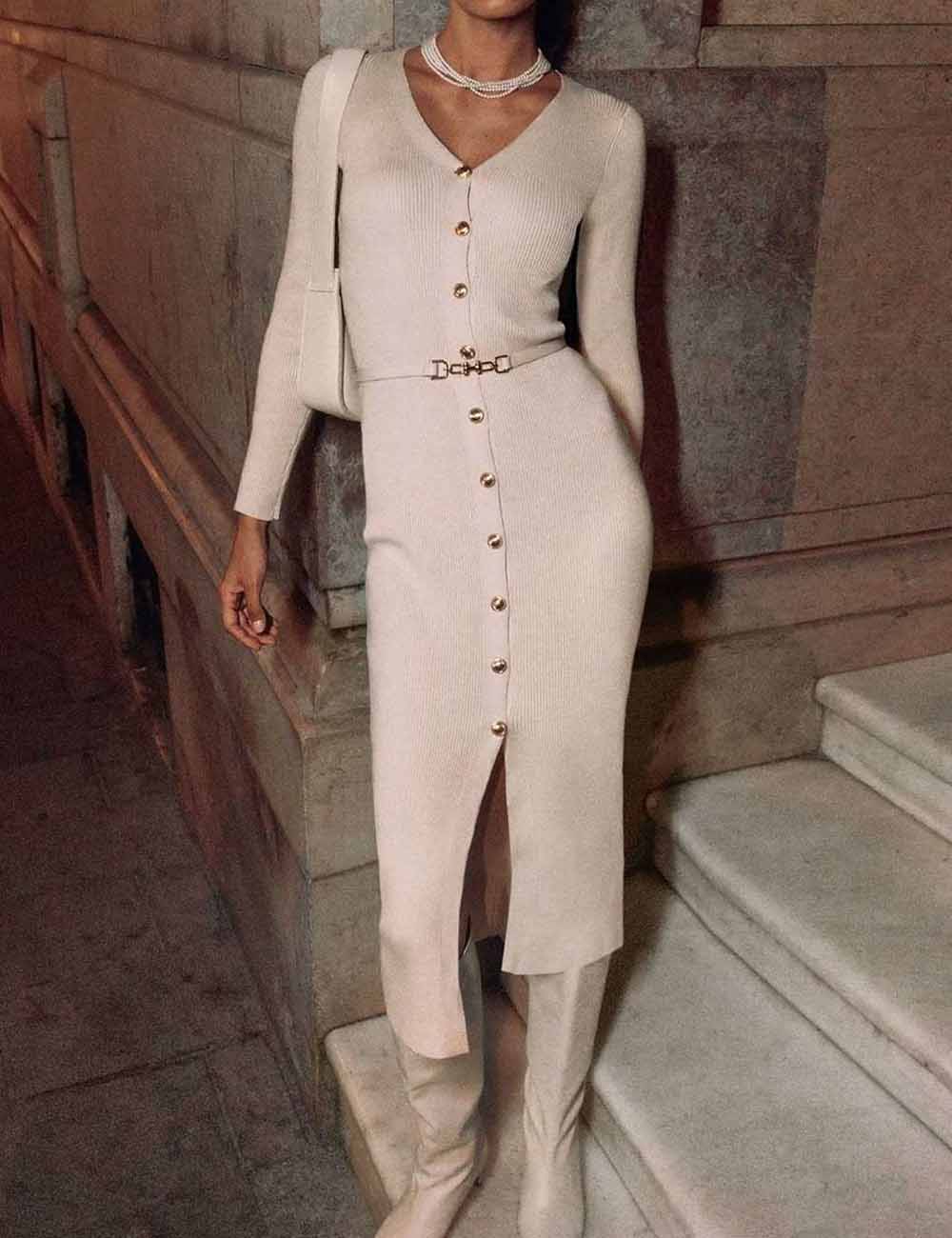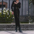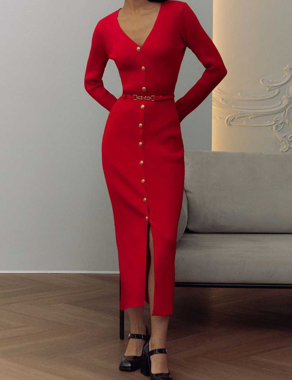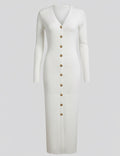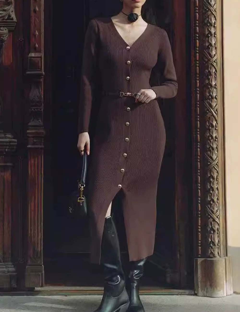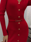 Fall Long Sleeve V-Neck Button Knit Dress DP25G530