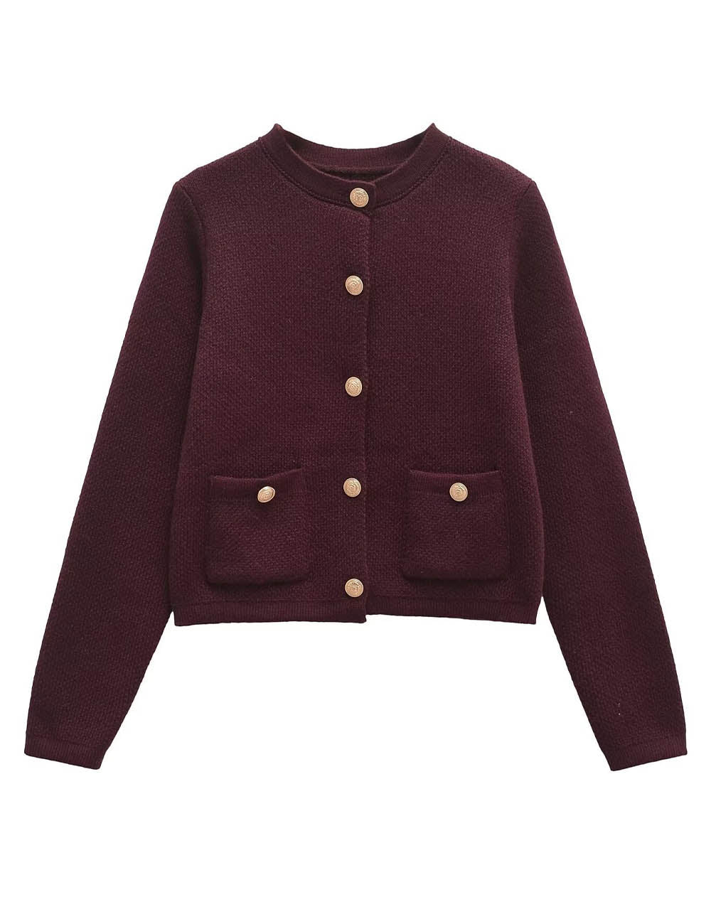 Fall Solid Color Crew Neck Knit Cardigan DP25G964