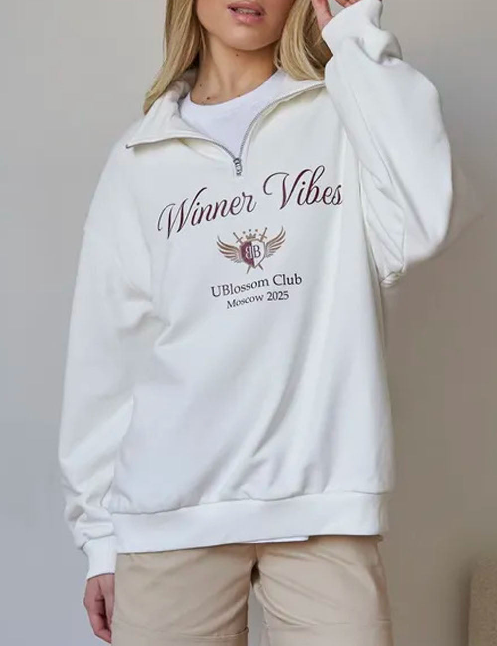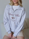 Letter Print Lapel Collar Half Zip Sweatshirt DP25E511