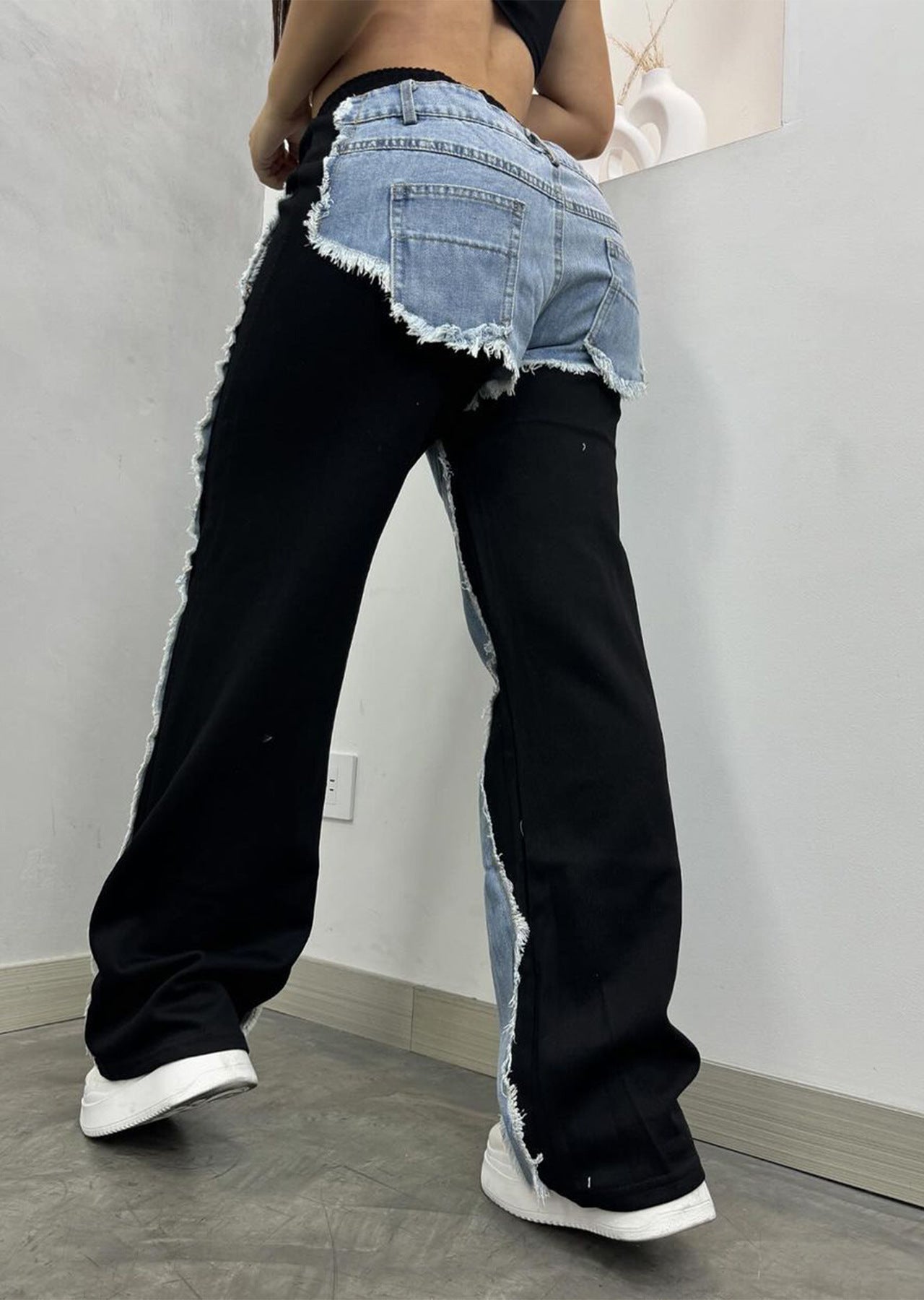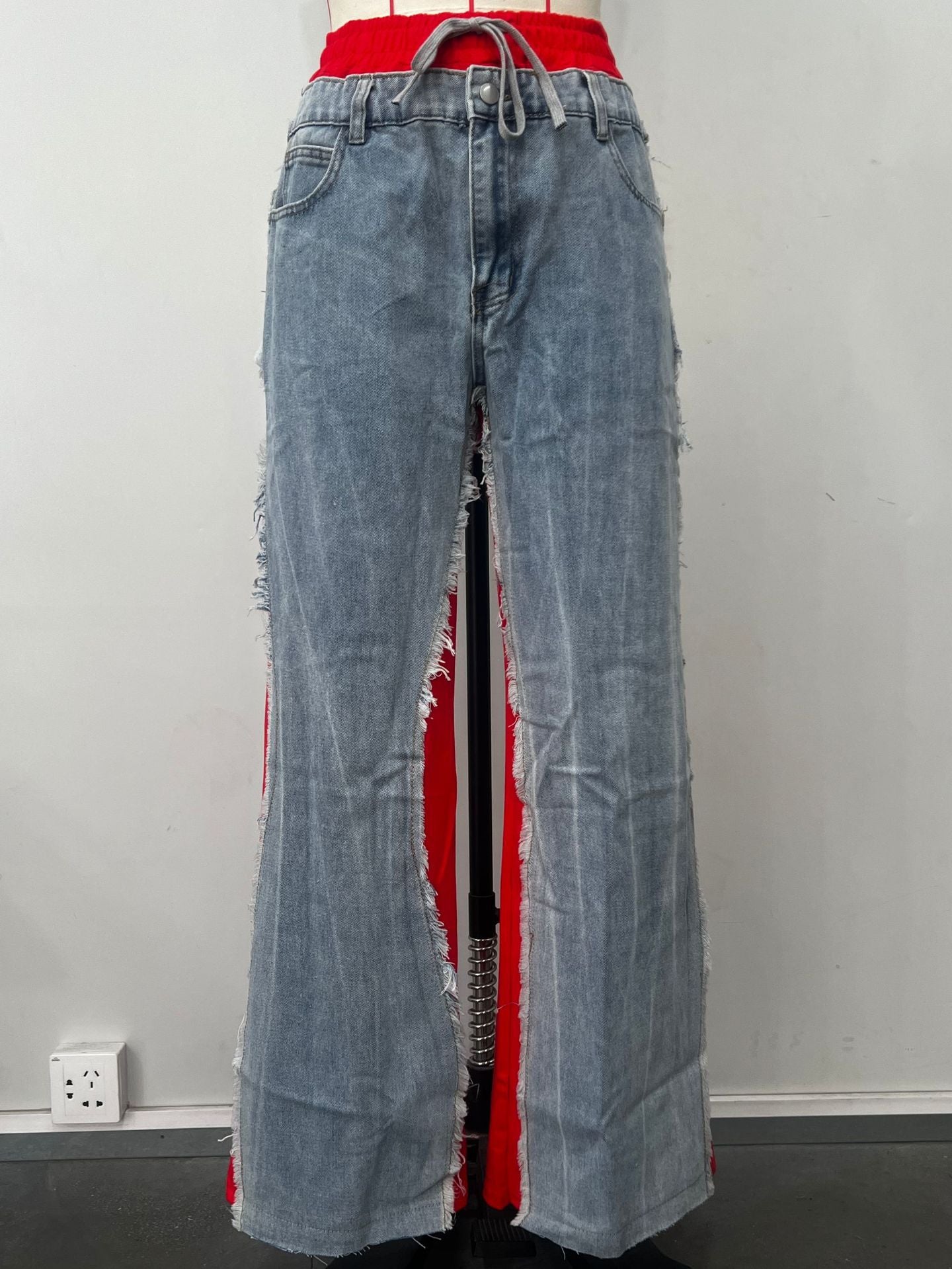 Fashion Splicing Drawstring Straight Leg Jeans DP25G678