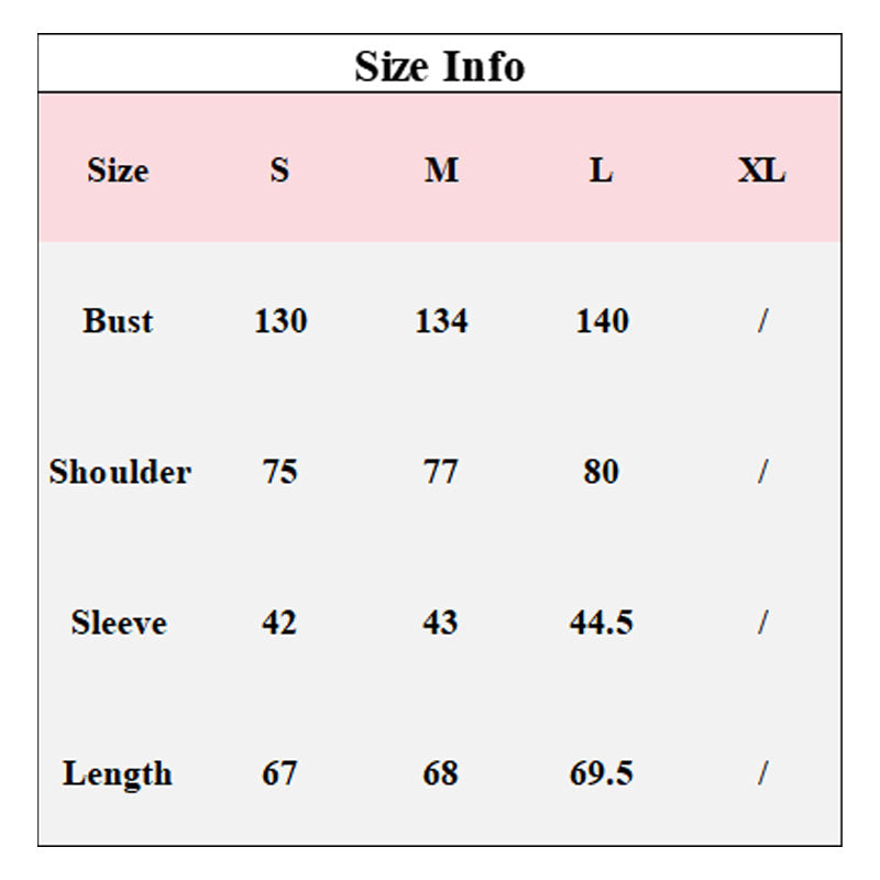 * Size Notice: Please refer to the size chart before purchasing. Manual measurement may result in a 1-3 cm difference.