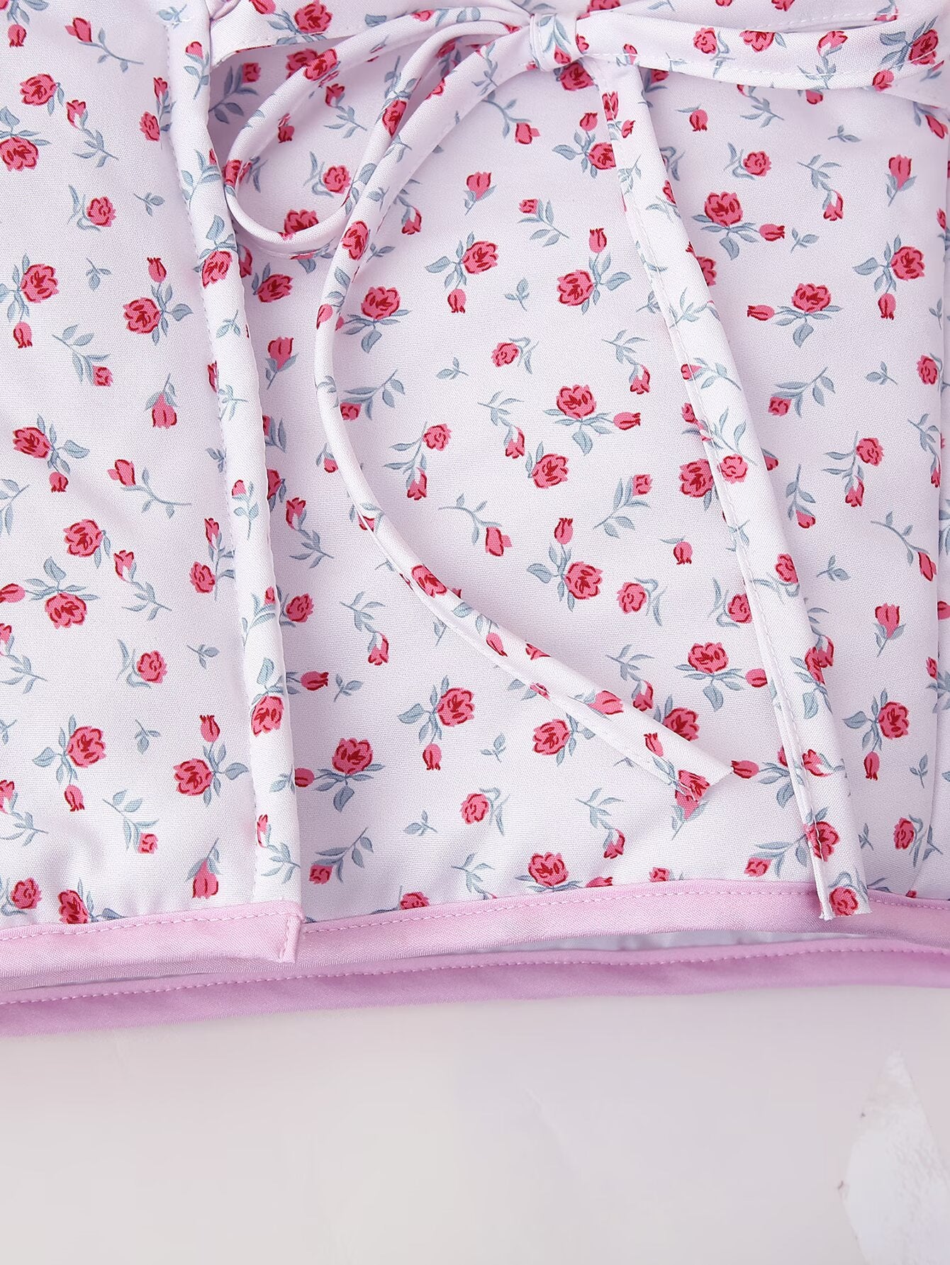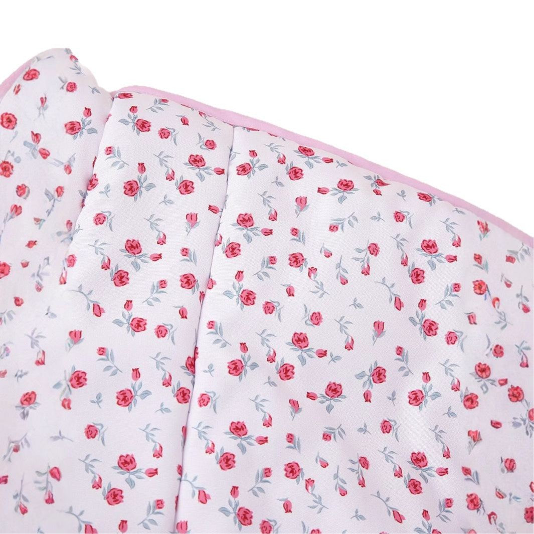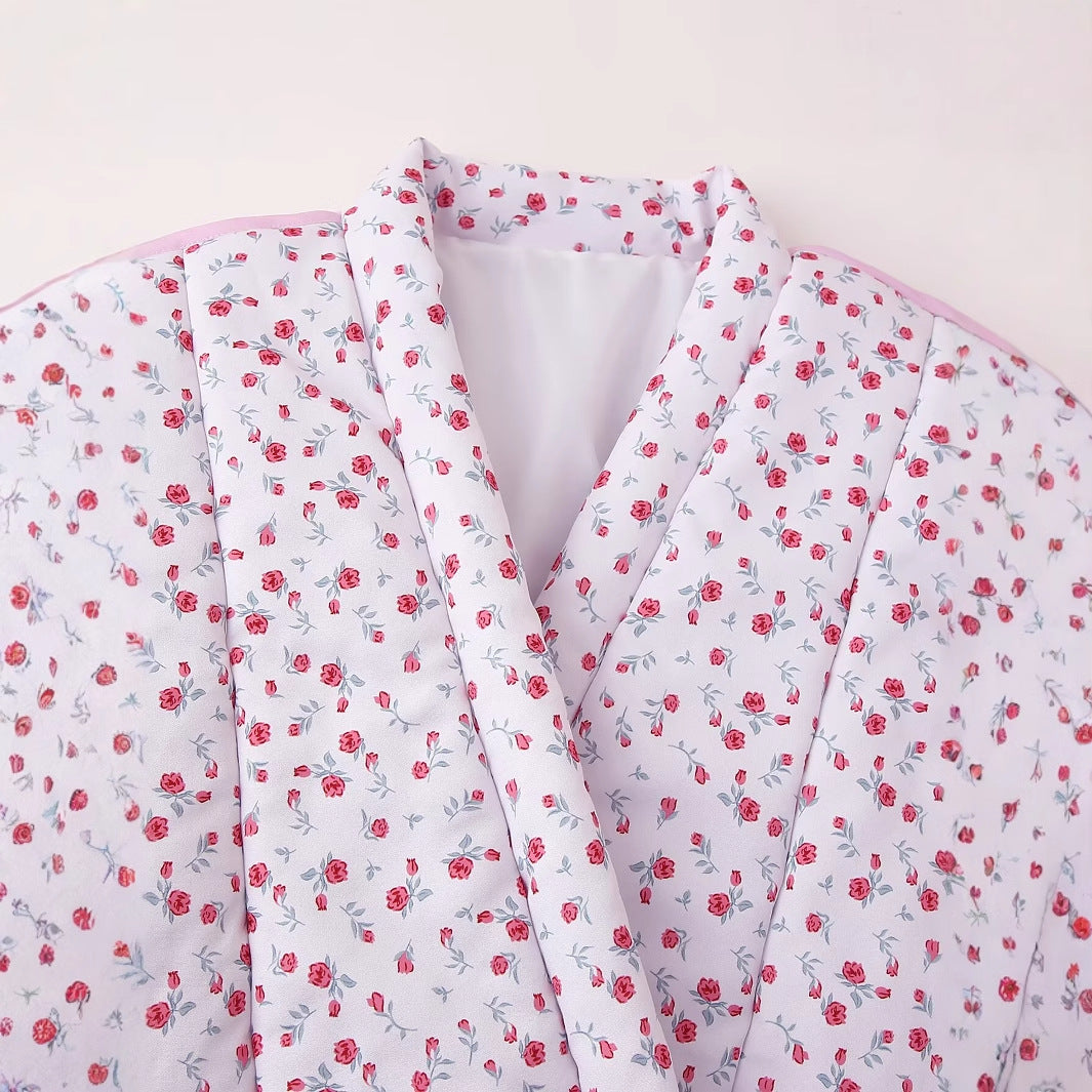 Floral Print Quilted V-Neck Tie Front Puffer Coat DP25G994