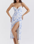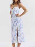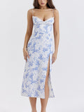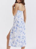 Floral Slim Backless Split Spaghetti Midi Dress DP25D601