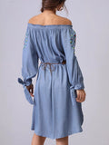 Flower Embroidered Off Shoulder Midi Dress DP25C882