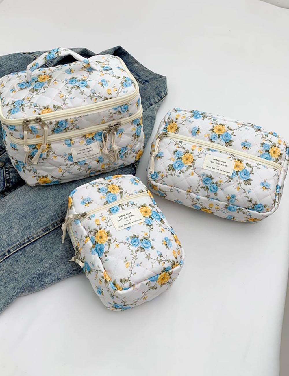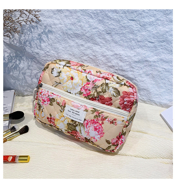 Flower Print Large Capacity Quilted Makeup Bag DP25H545