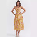 Flower Print Low Collar Spaghetti Midi Dress DP25B409