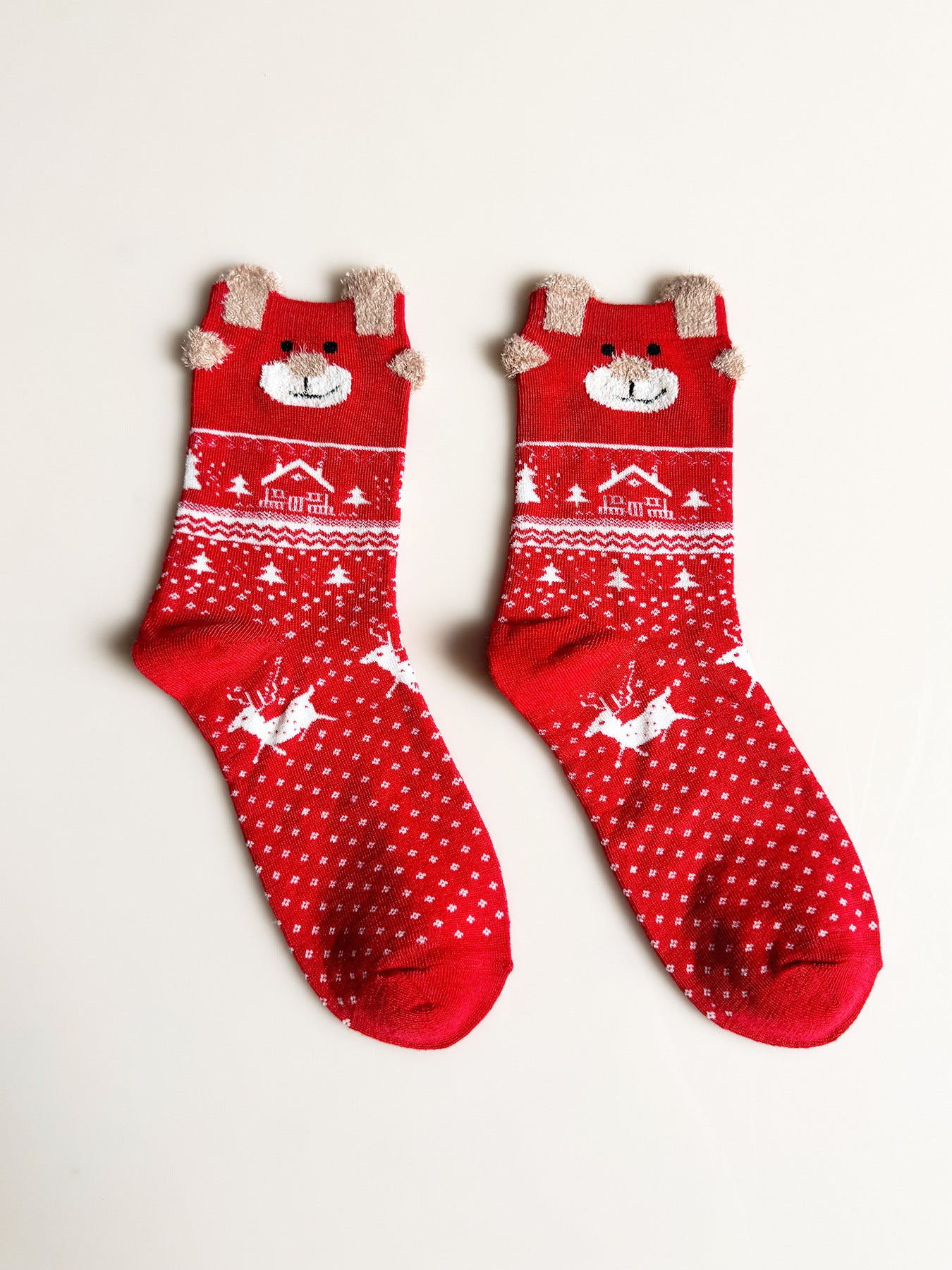 Funny Cartoon Reindeer Christmas Crew Socks Set DP25G754