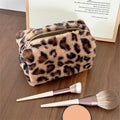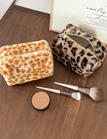 Fuzzy Plush Leopard Print Travel Cosmetic Bag DP25H550