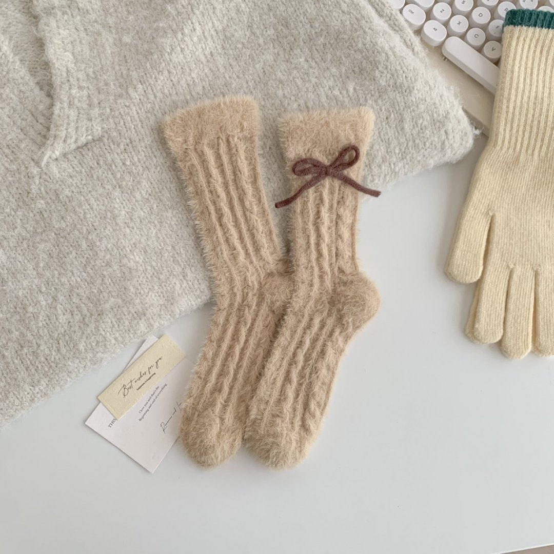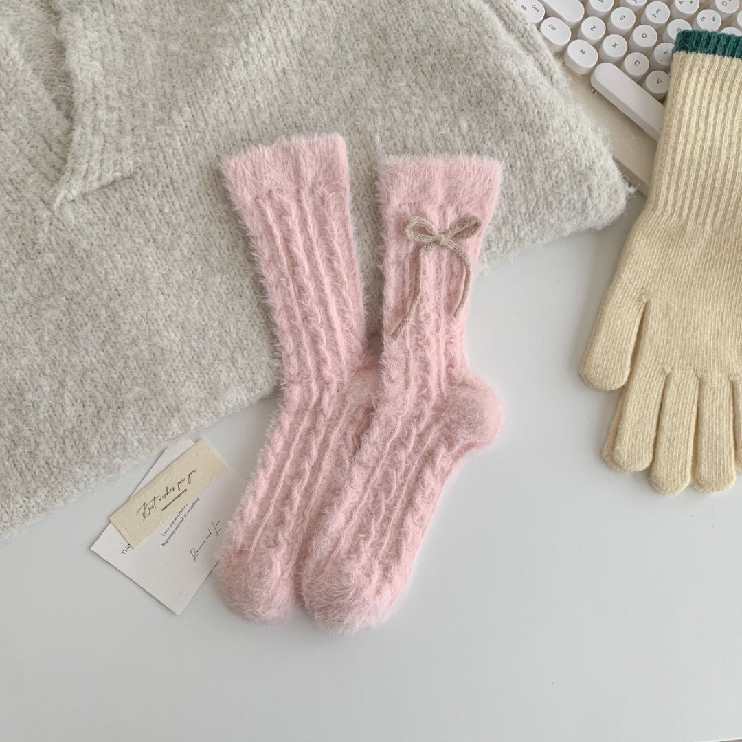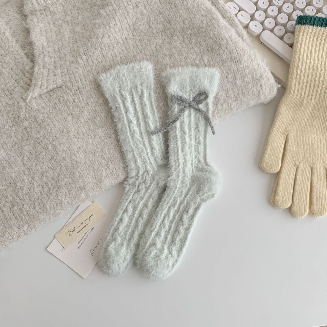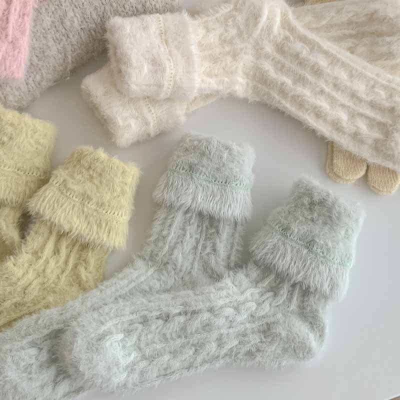 Fuzzy Soft Cable Knit Plush Crew Socks DP25H519