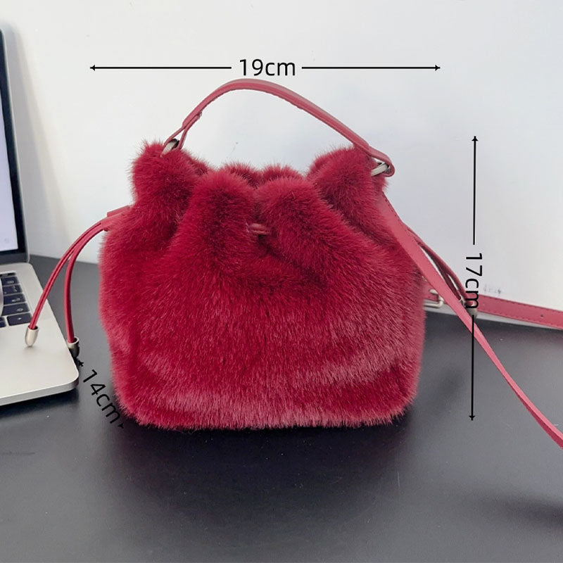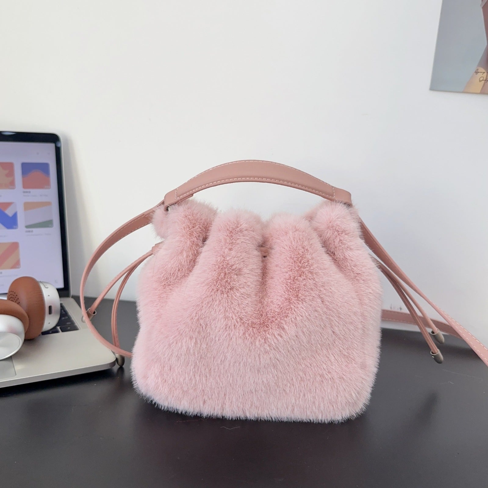 Fuzzy Soft Trendy Drawstring Bucket Crossbody Bag DP25H583