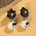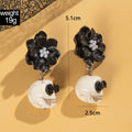 Gothic Black Camellia Skull Stud Earrings DP25G512