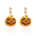 Halloween Enamel Pumpkin Rhinestone Hoop Earrings DP25G513