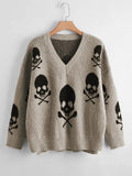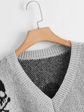 Halloween V-Neck Skull Pullover Sweater DP25G436
