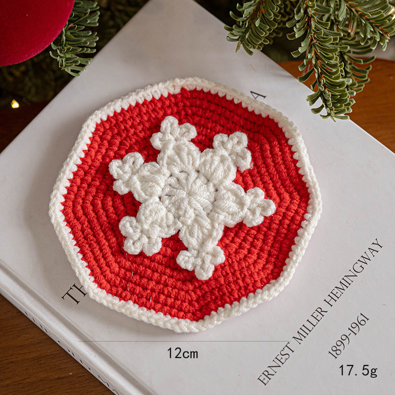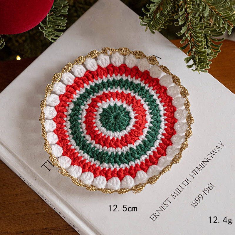 Handmade Holiday Table Decor Knitted Christmas Coaster DP25G818