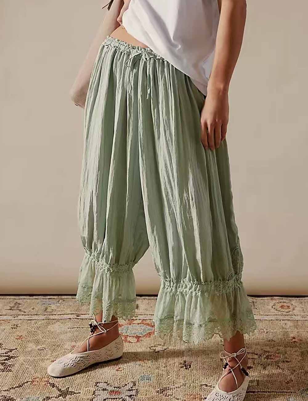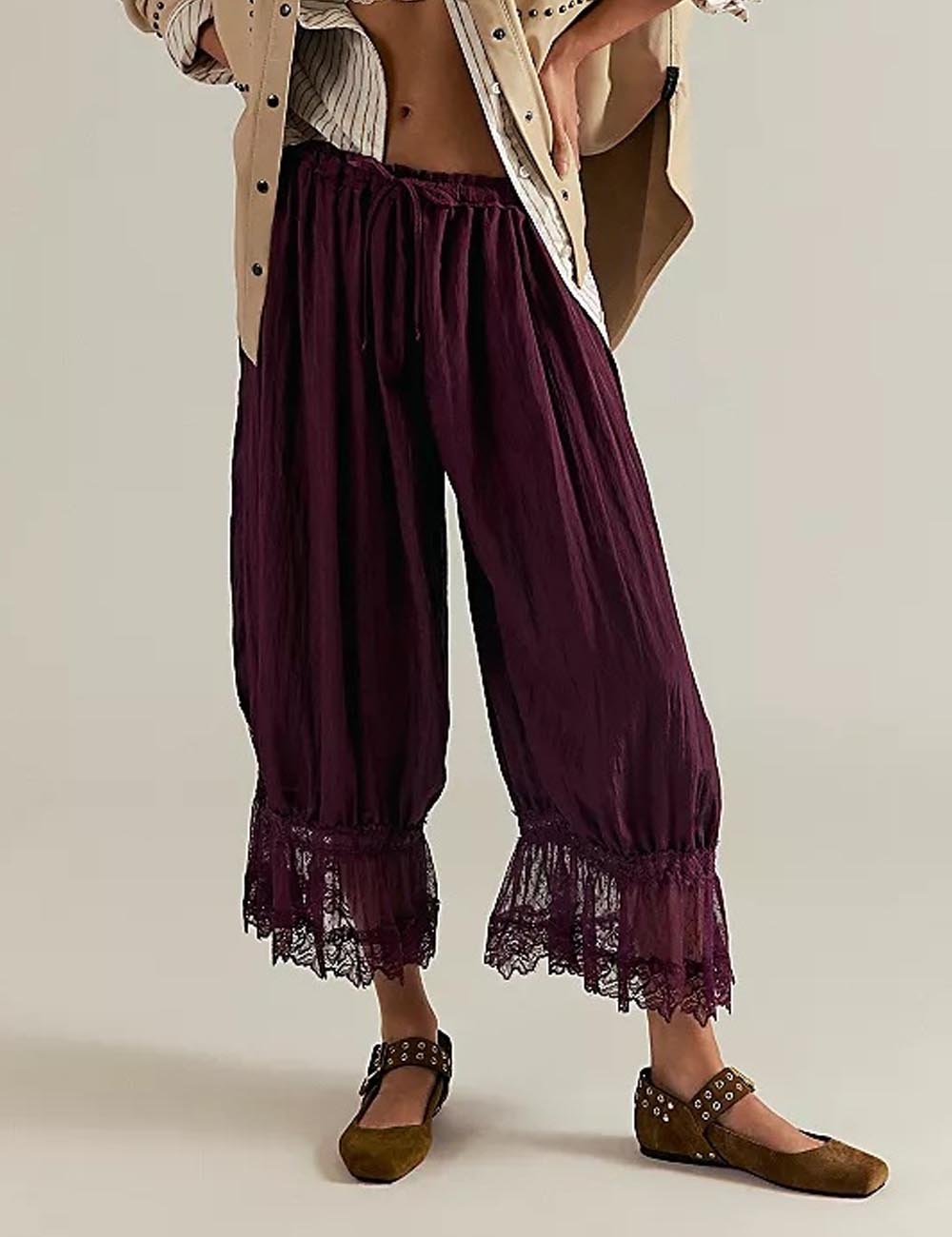 Hollow Lace Tie Front Sleepwear Pants DP25F866