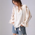Hollow String Flare Sleeves Pullover Shirt DP25C867