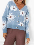 Jacquard V-Neck Button Down Cropped Knit Cardigan DP25F716