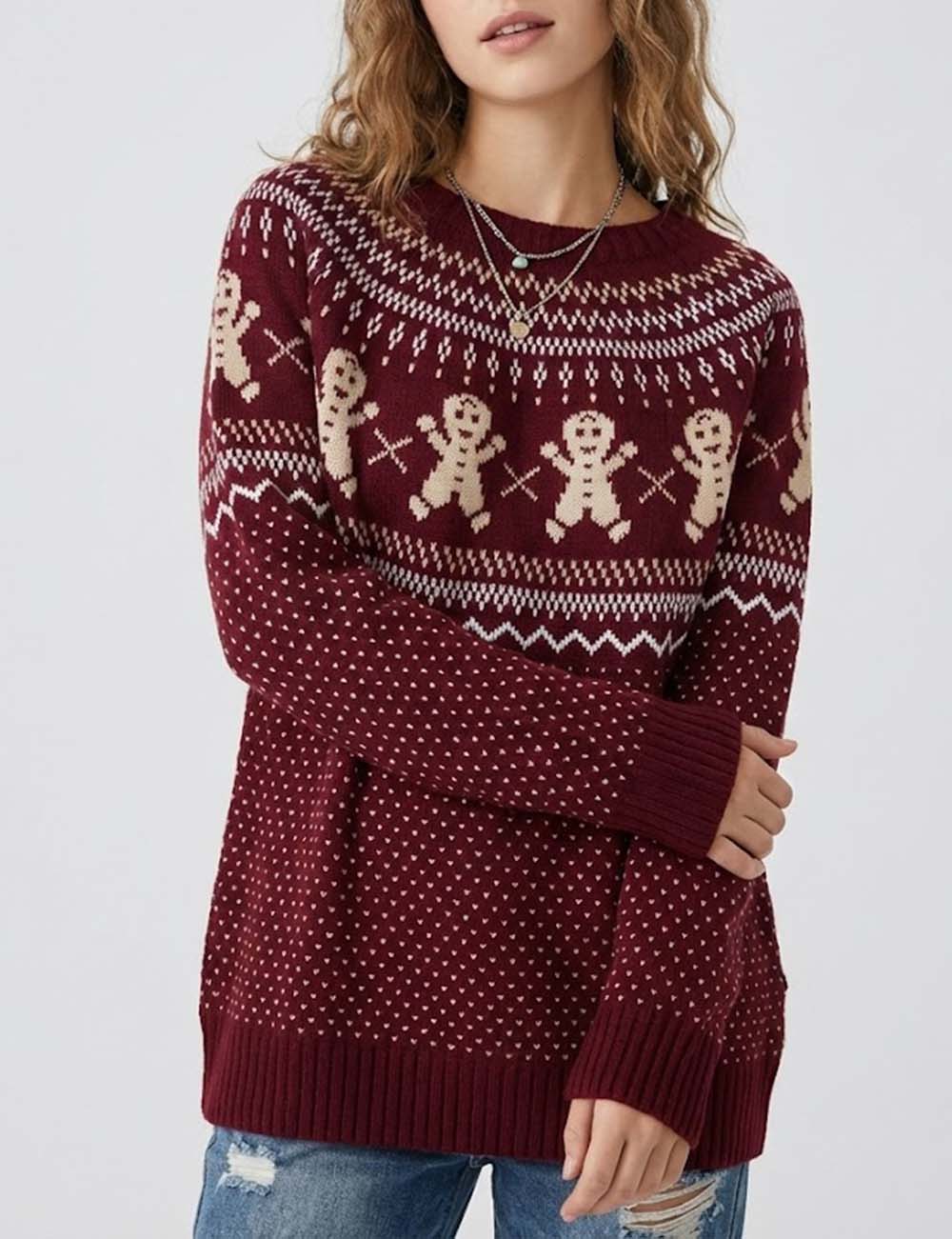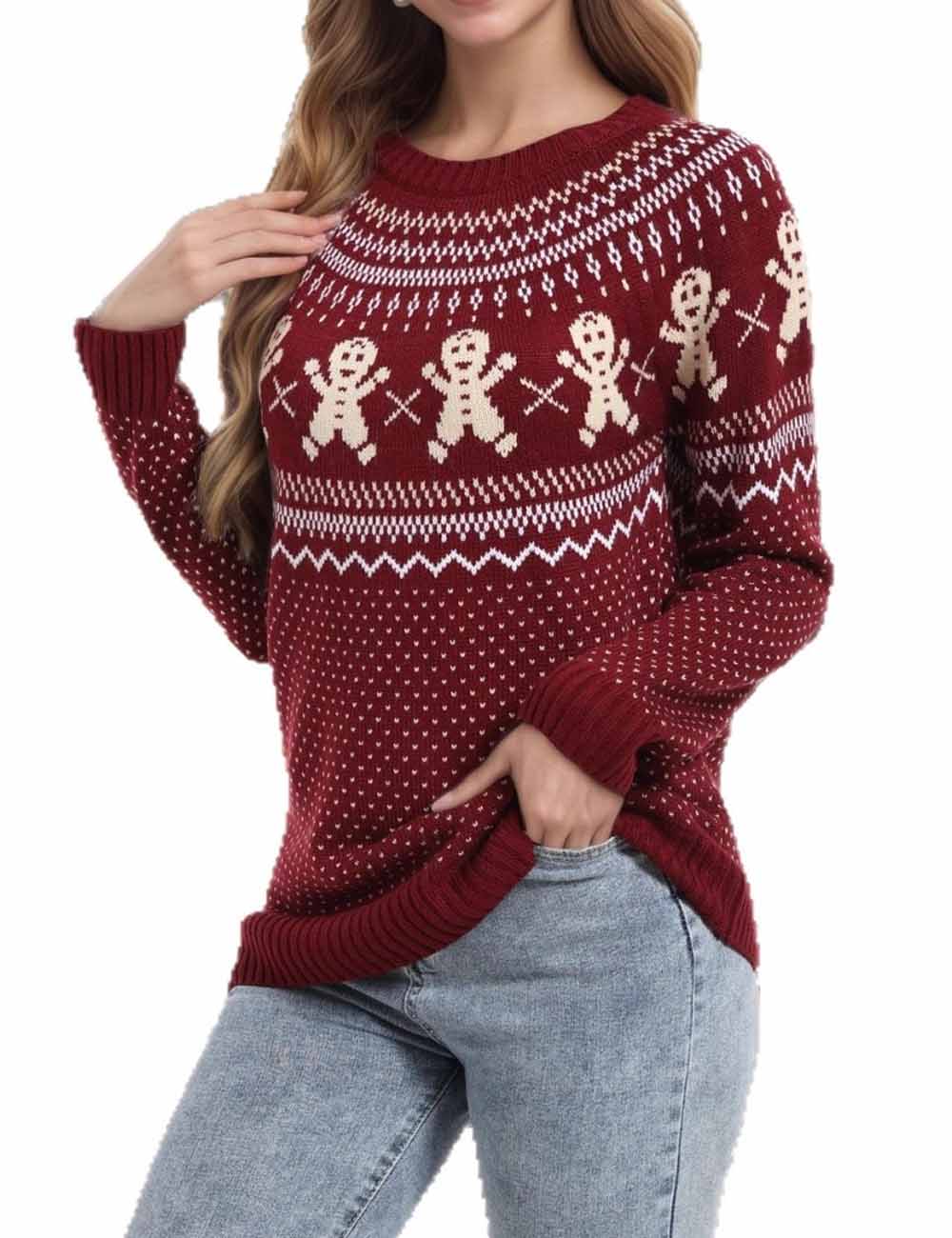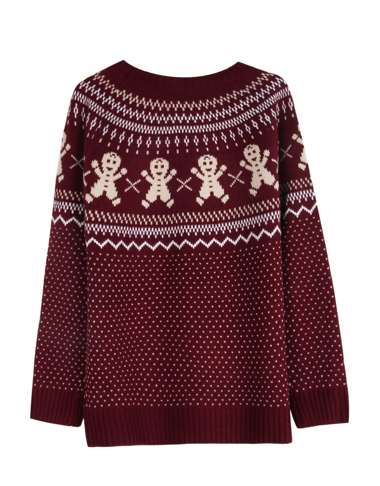 Knit Polka Dots Snowflake Pullover Sweater DP25H431