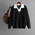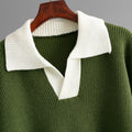 Knit Polo Collar Color Block Pullover Sweater DP25G931