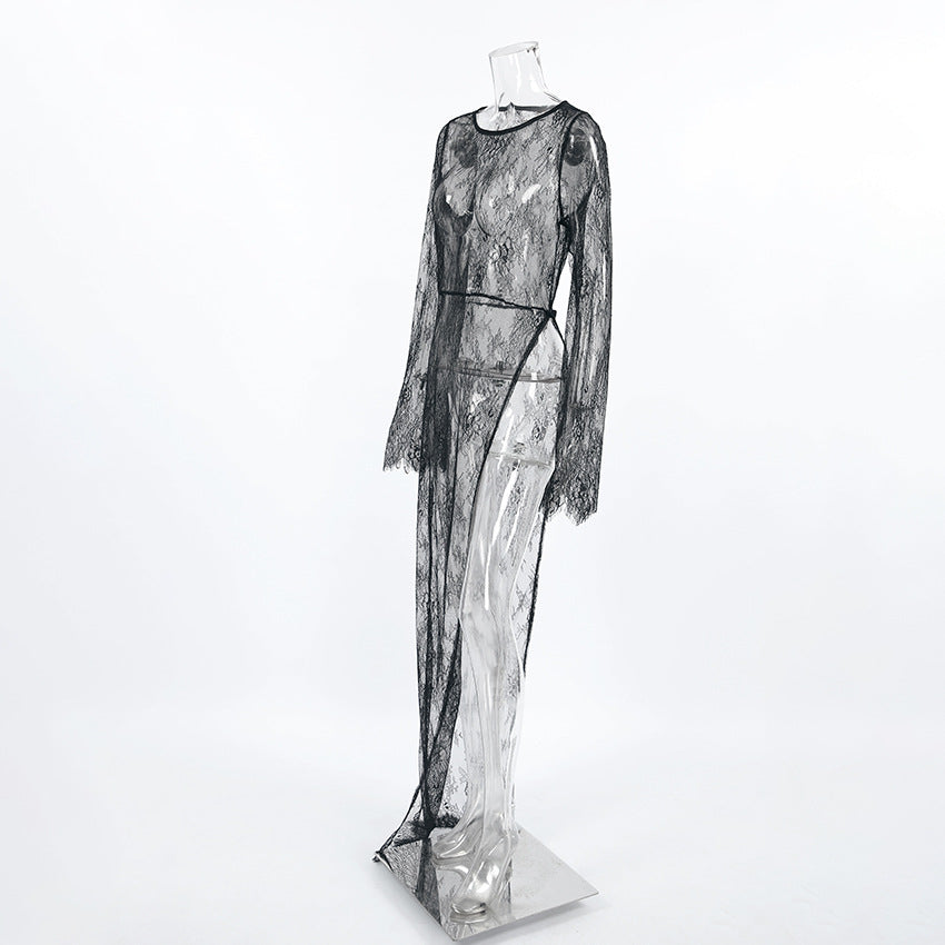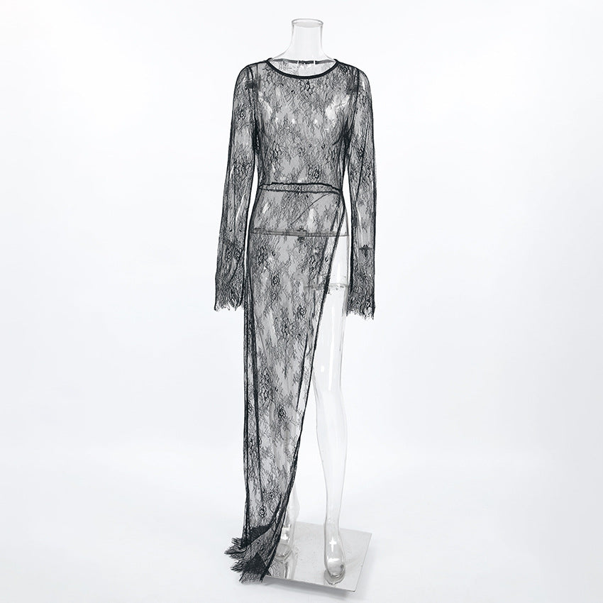 Lace See Through Side Split Long Dress DP25A419