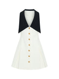 Lapel Mental Buttons Sleeveless Mini Dress DP25E673