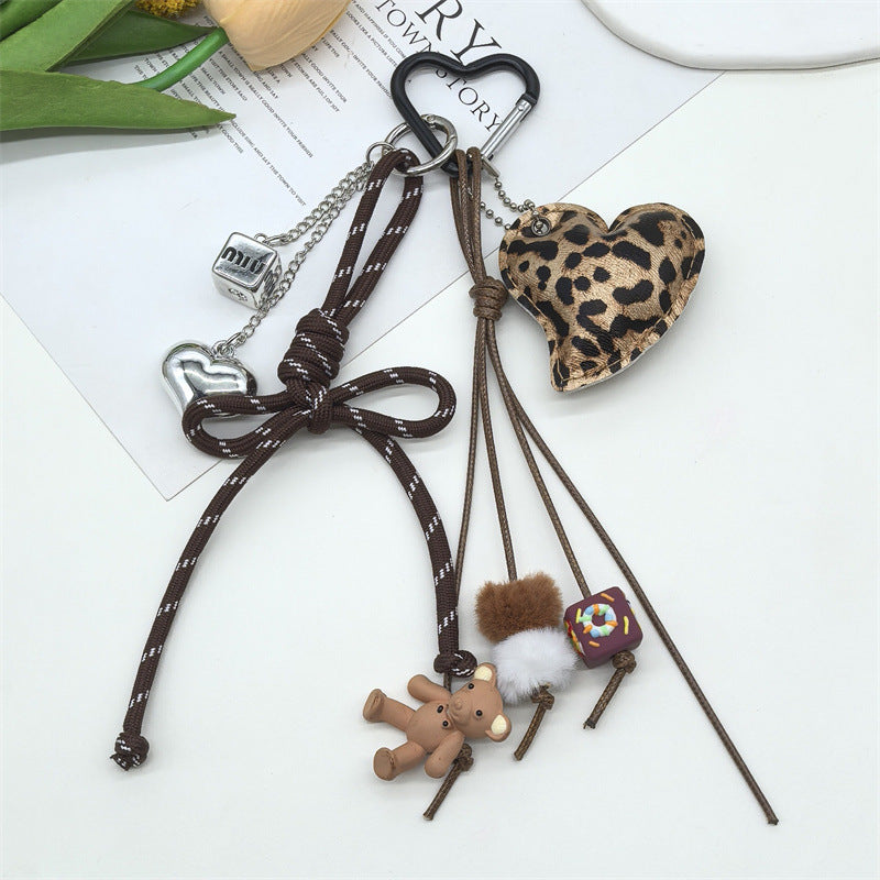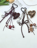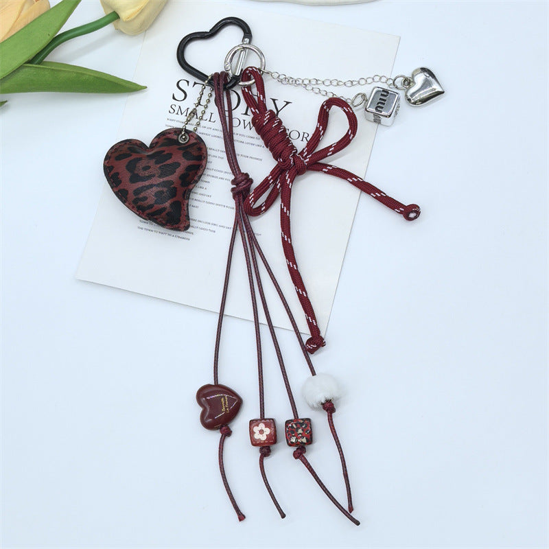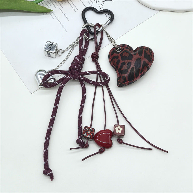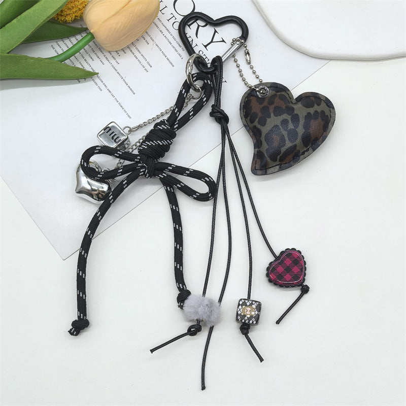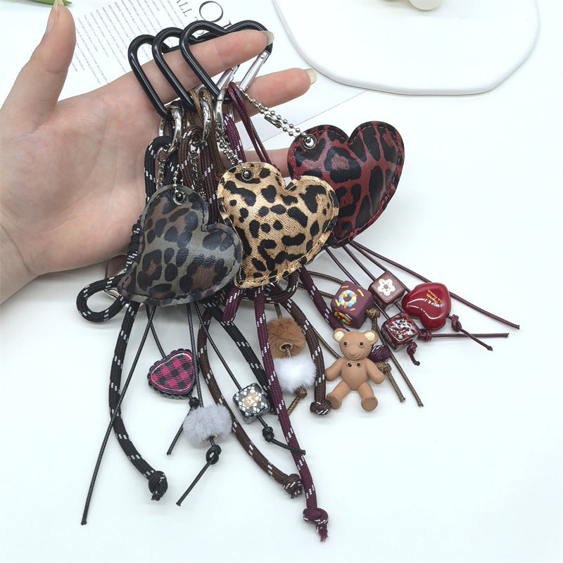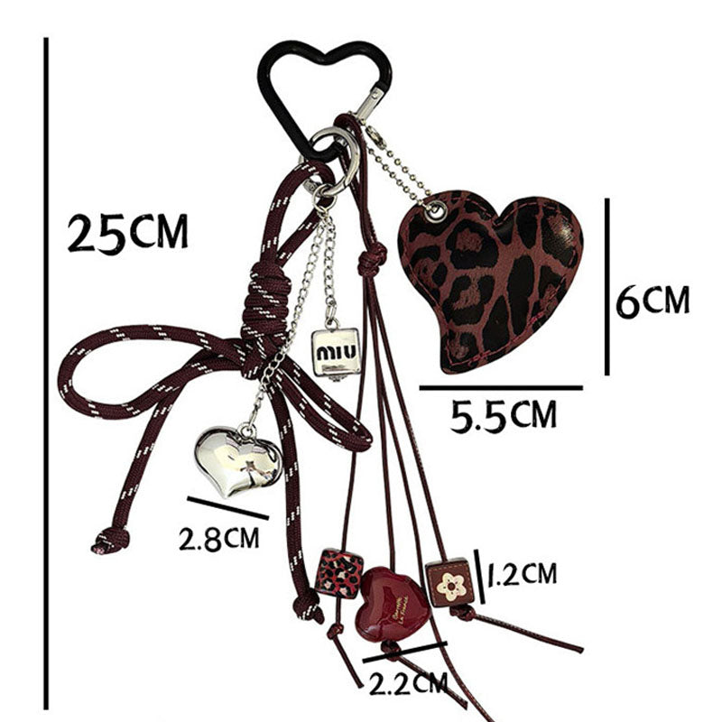 Leopard Print Heart Tassel Keychain Bag Charm DP25H614