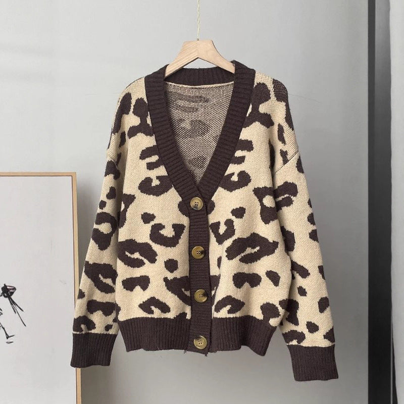 Leopard Print V-Neck Oversized Knit Cardigan DP25H633