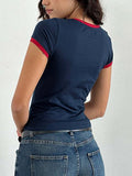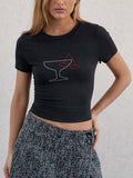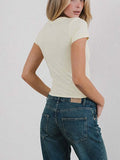 Letter Print Round Neck Slim Tops DP25C450