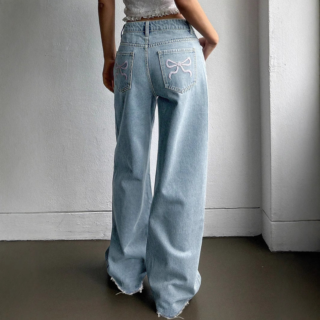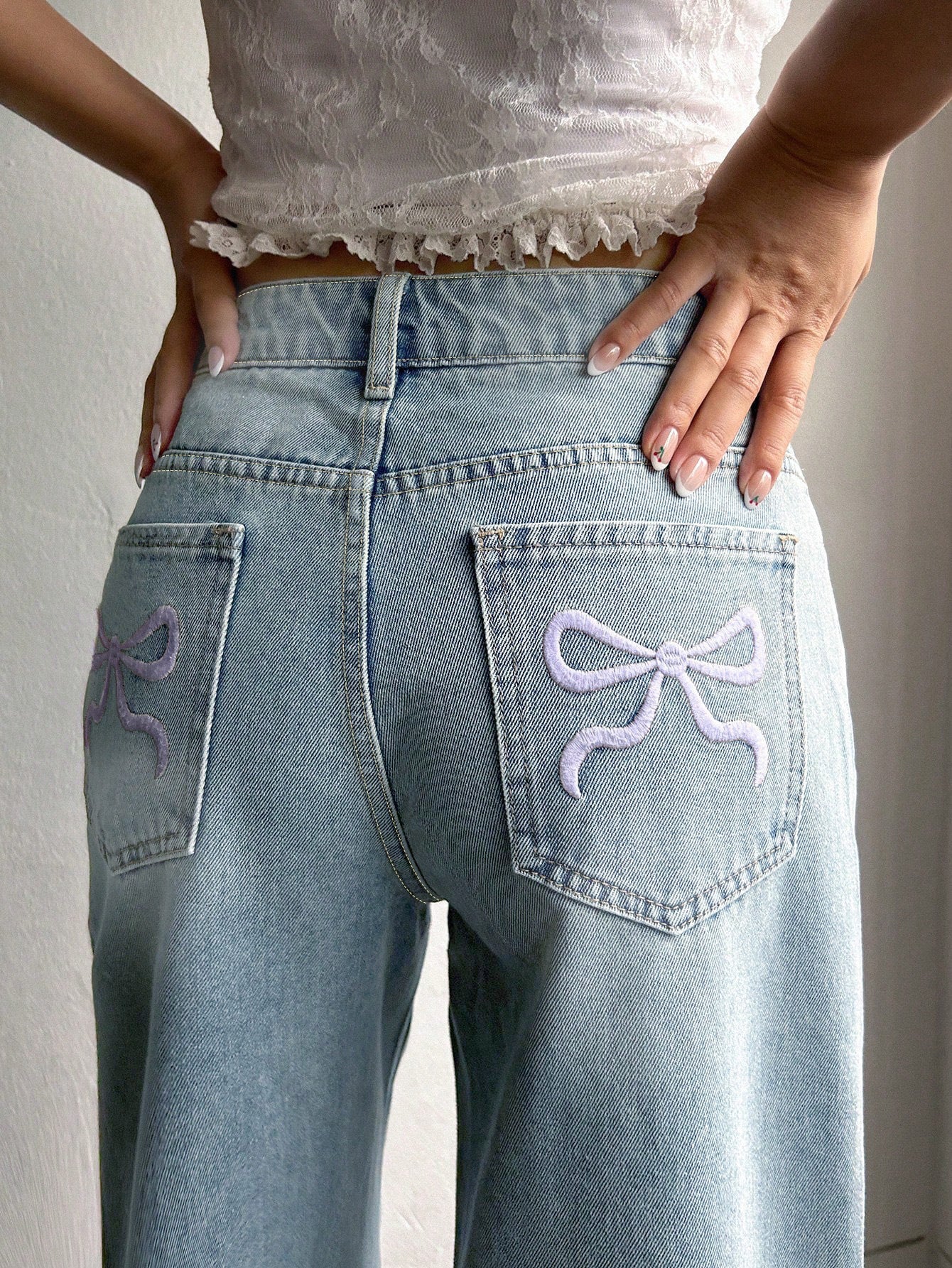 Loose Embroidered Pocket Straight Leg Jeans DP25G680