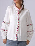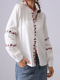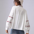 Minimalist Floral Embroidered Ruffle Neck Top DP25D890