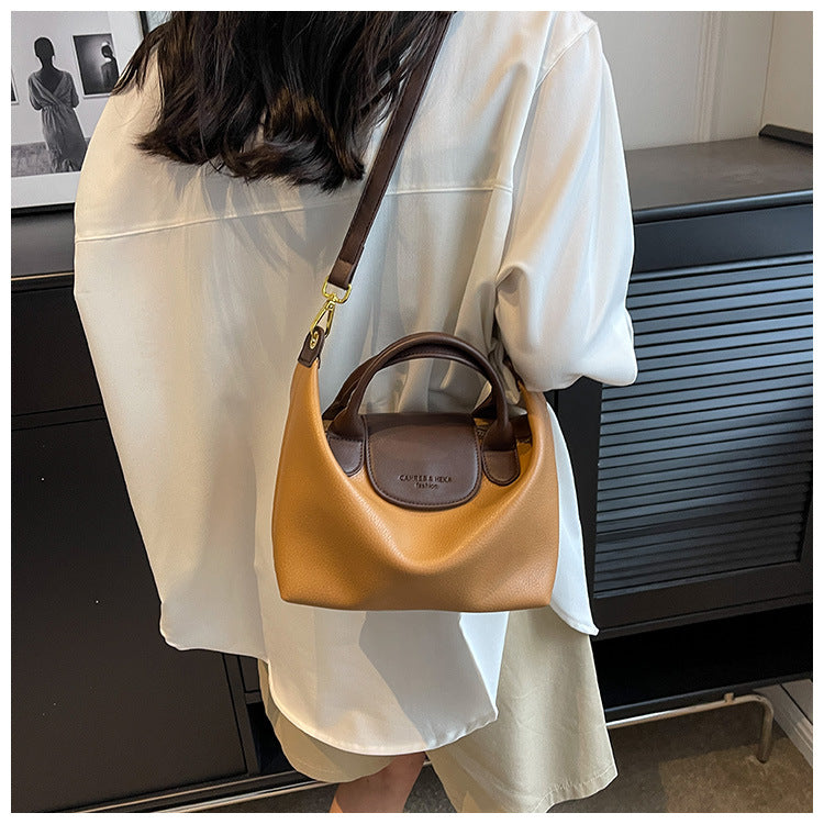 Minimalist Leather Top Handle Shoulder Bucket Bag DP25G628