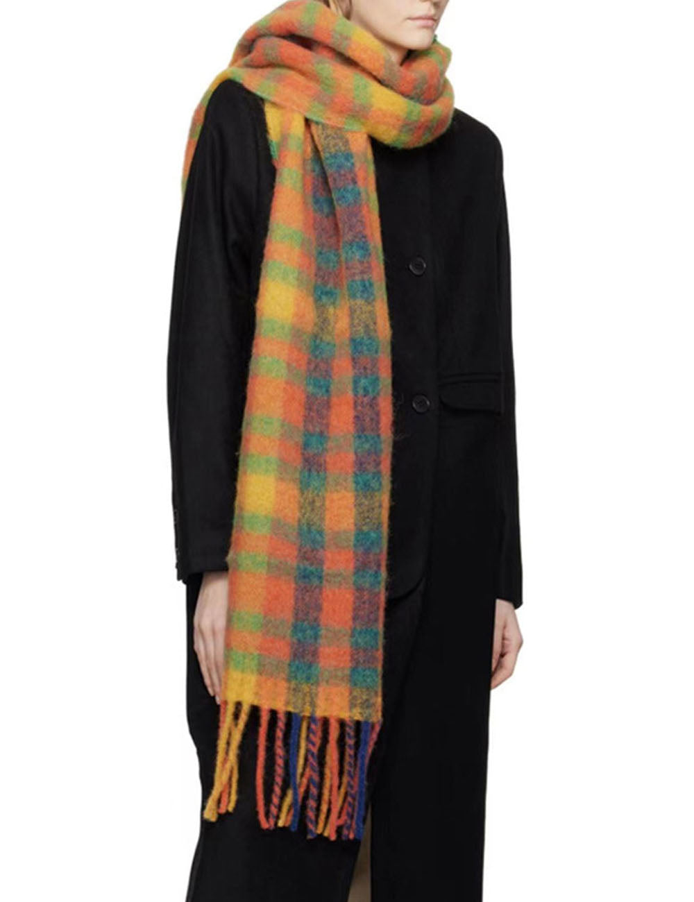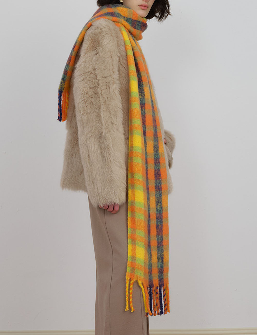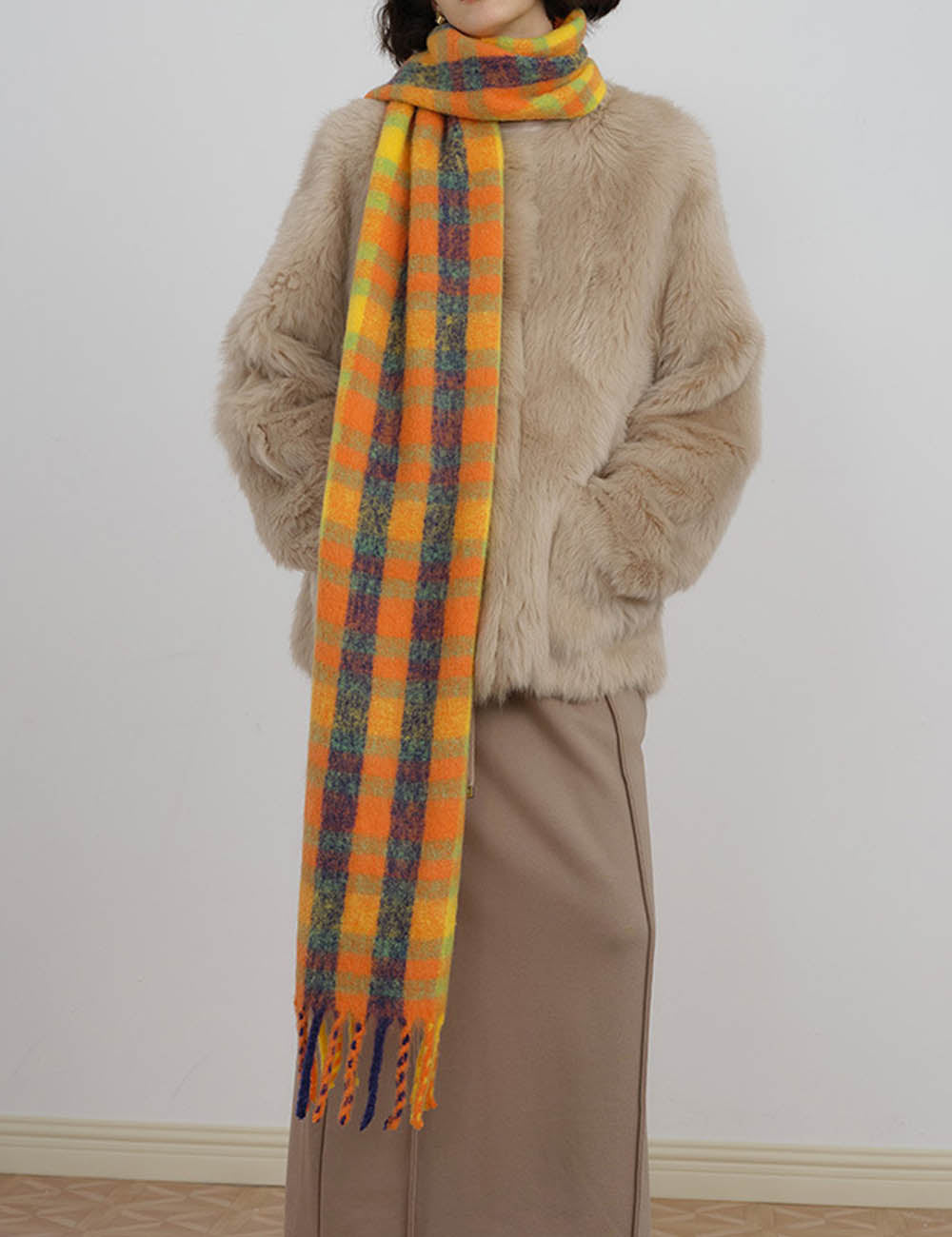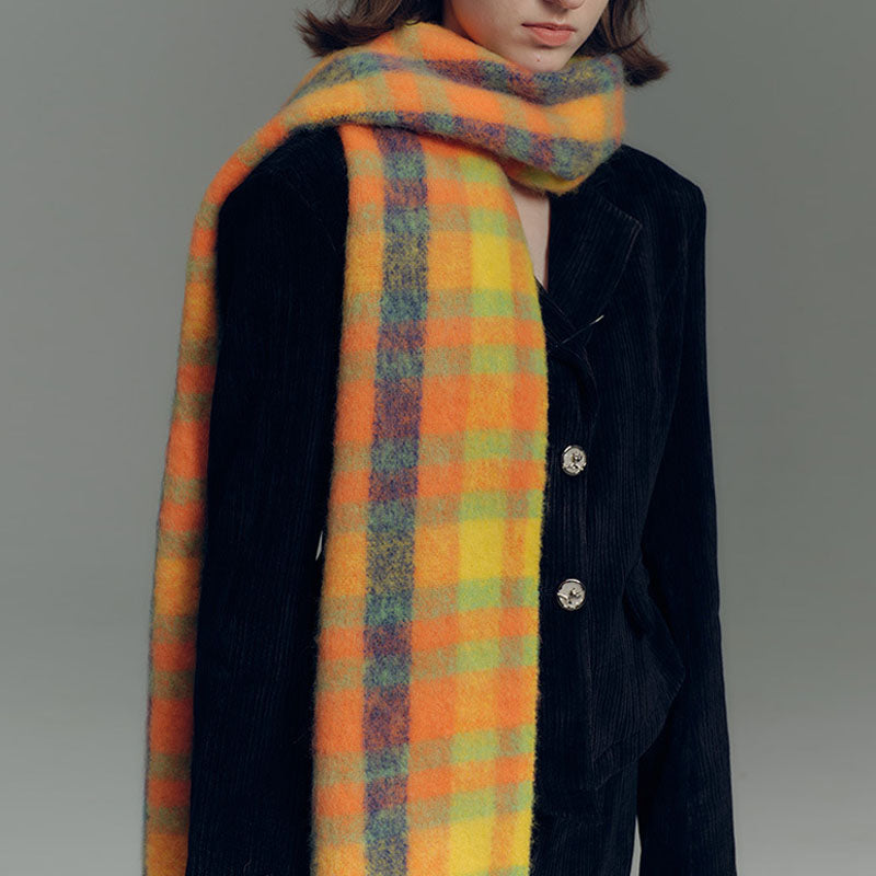 Minimalist Plaid Wool Blend Winter Knit Scarf DP25H671